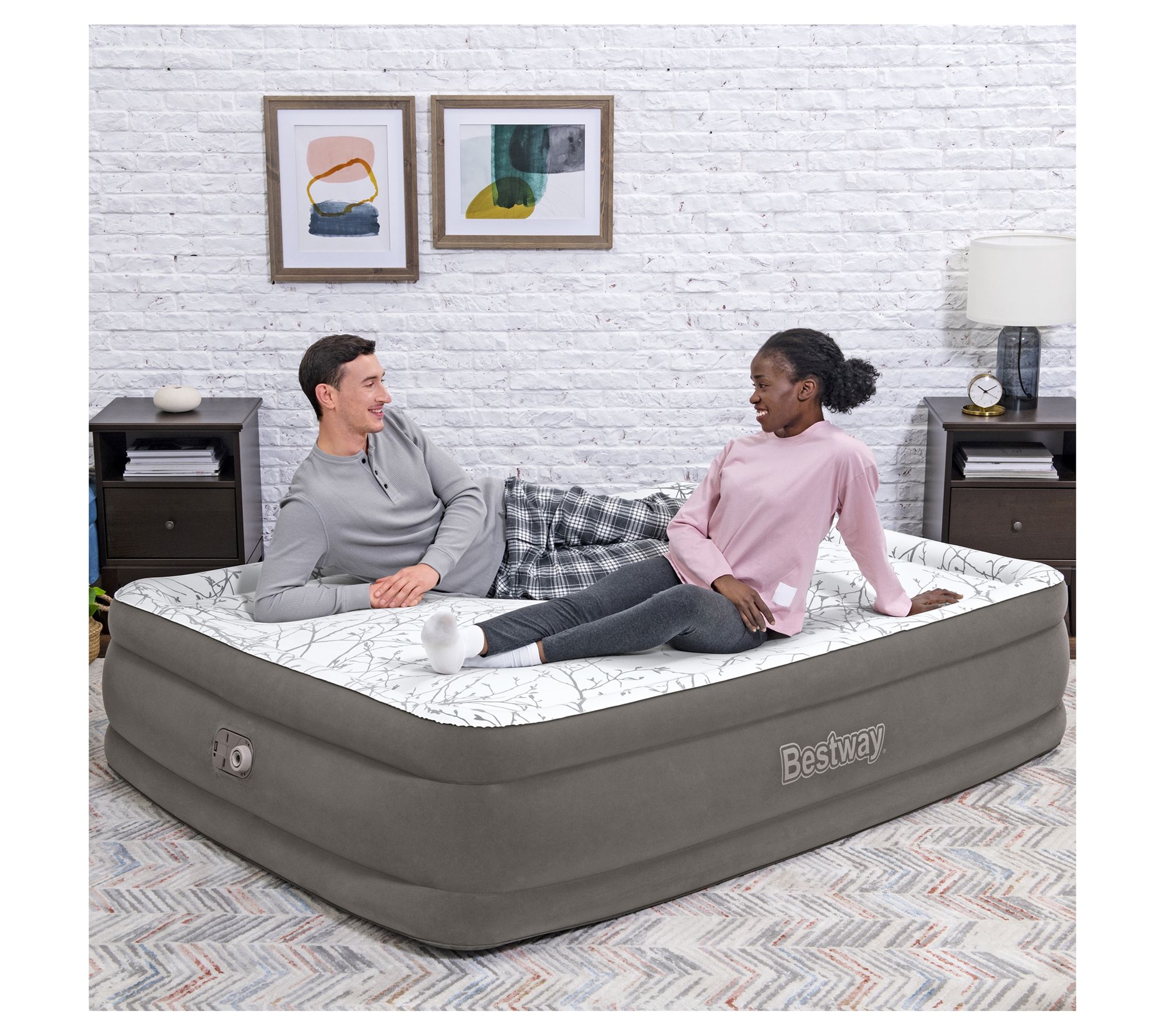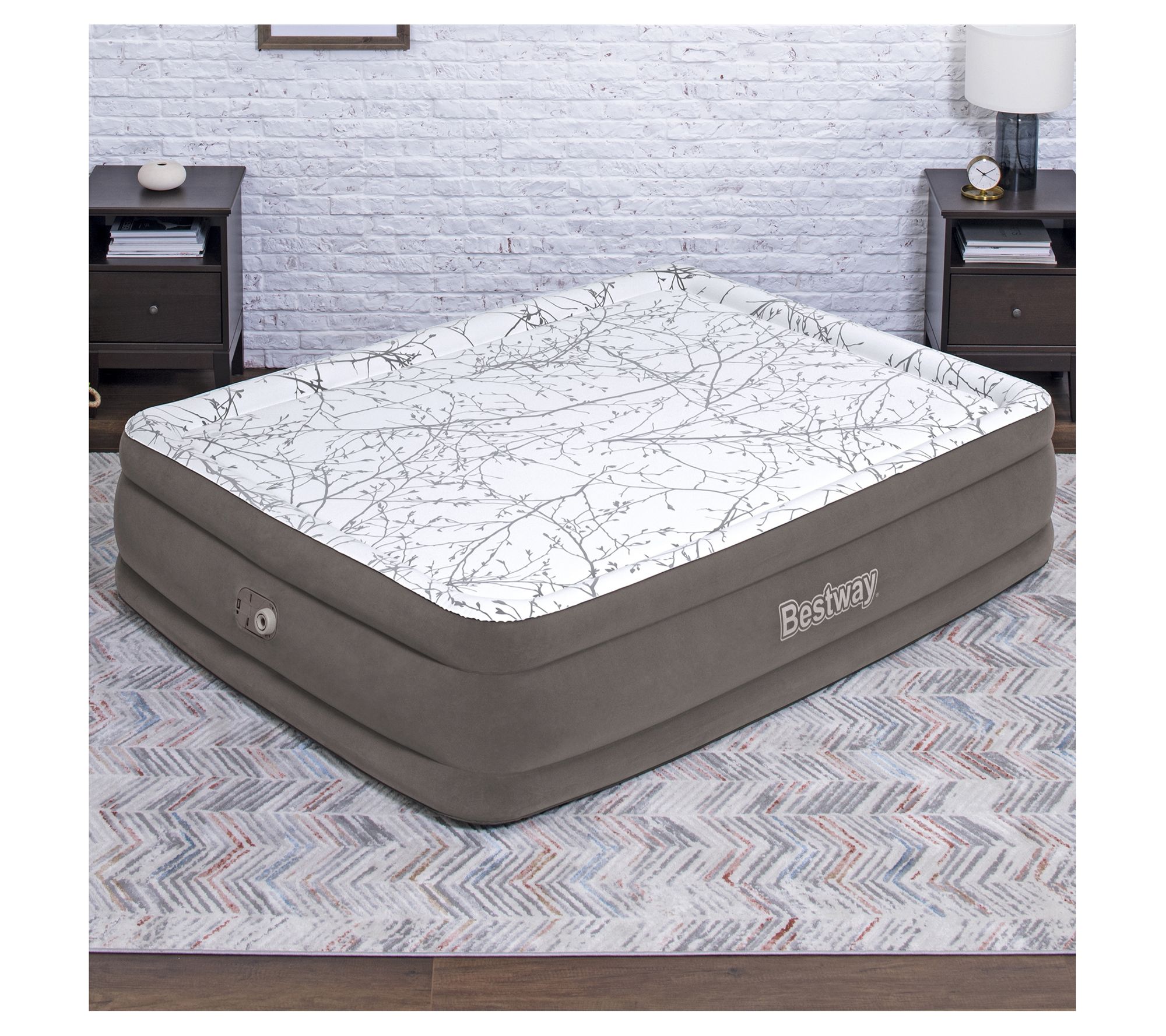 Slumber in peace through the night on this queen-sized air mattress boasting contoured support and a plush cushioned top. From Bestway.