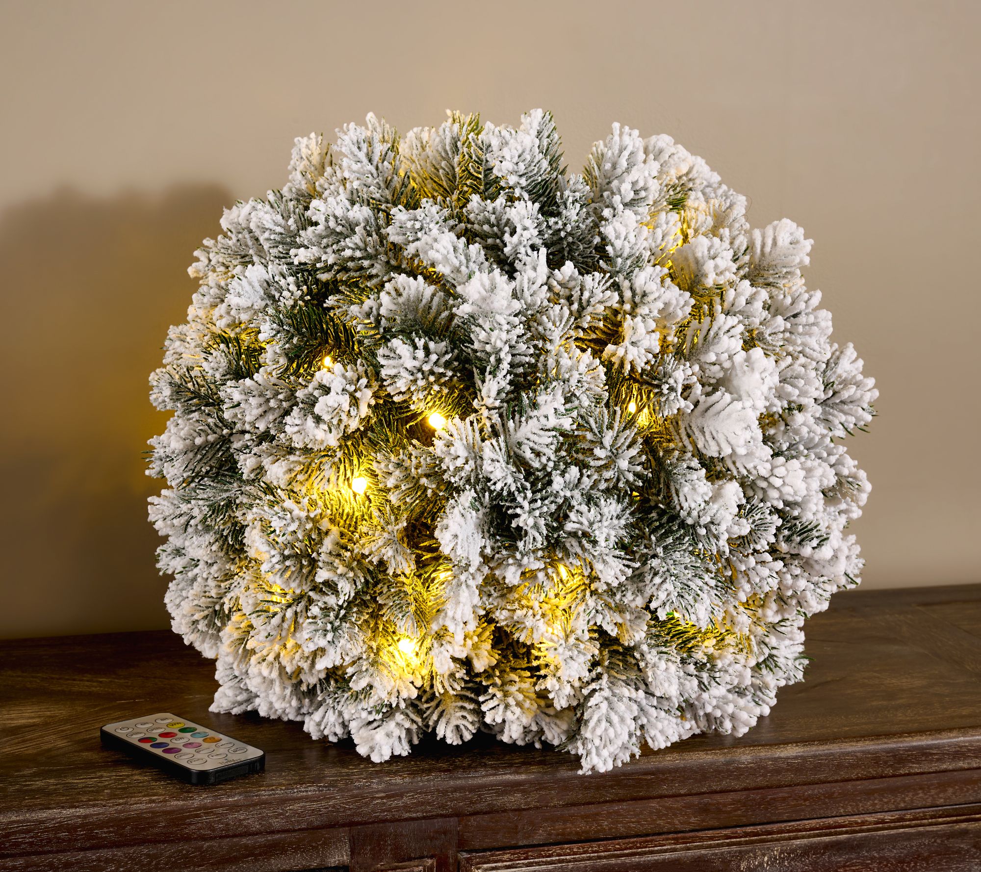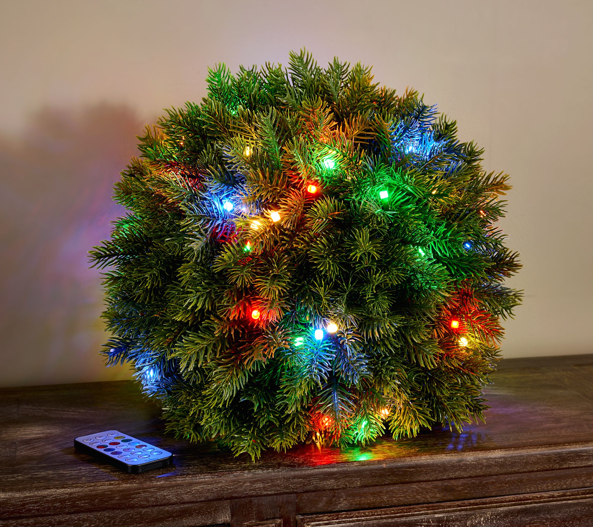 Sit back and enjoy the wow with this color prism sphere. Designed with fabulous faux foliage and 88 dazzling LEDs, this holiday focal point entertains everyone with 17 color combinations and 81 functions to create an amazing variety of customizable light show options. From Bethlehem Lights.