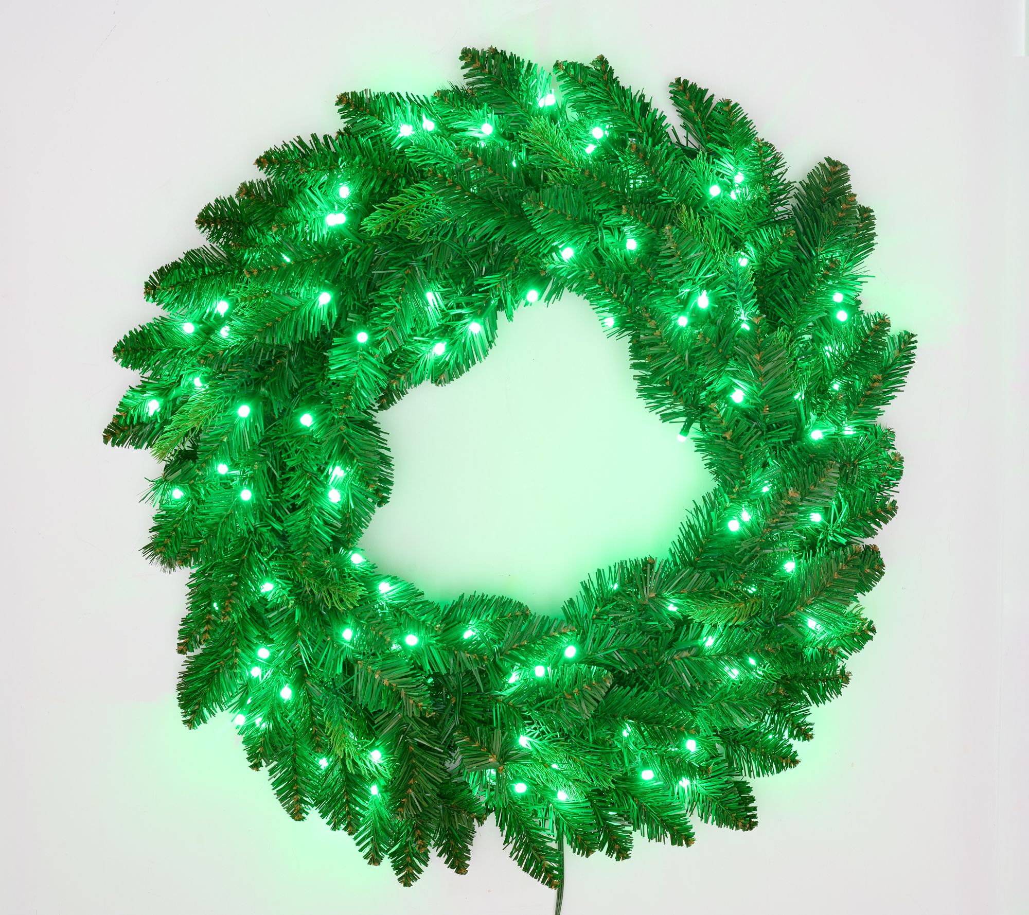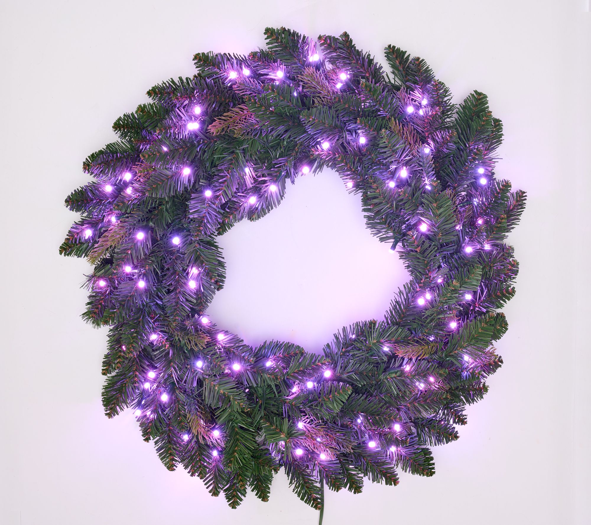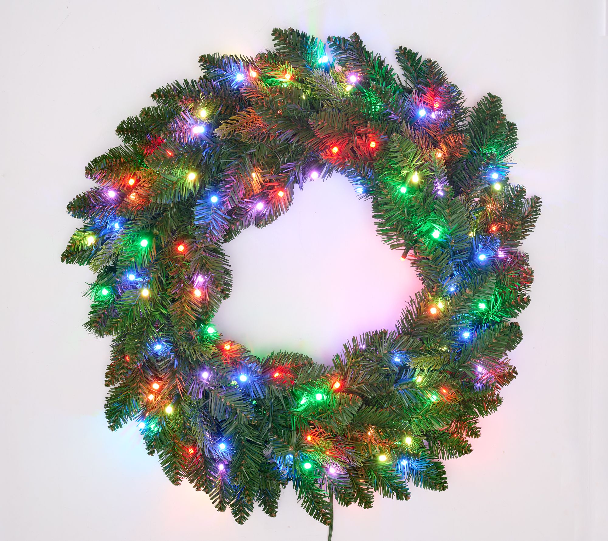 Holiday gatherings sparkle with a spectrum of vibrant color when you display this 26" wreath, featuring a dazzling array of 120 LEDs and more than eighty ways to light up the season. Adjust speed and brightness, set the timer, and switch between effects with the included remote or app for effortless decorating. From Bethlehem Lights.