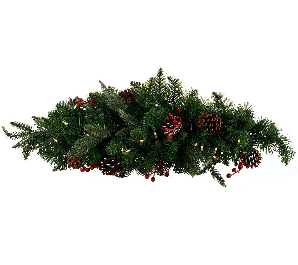 Get your seasonal swag on. Clusters of red berries and pinecones accent the lush, lifelike greens of this Bethlehem Lights swag. The 20 bright, long-lasting LED lights are battery operated, allowing you to place this almost anywhere inside or outside your home. From Bethlehem Lights.