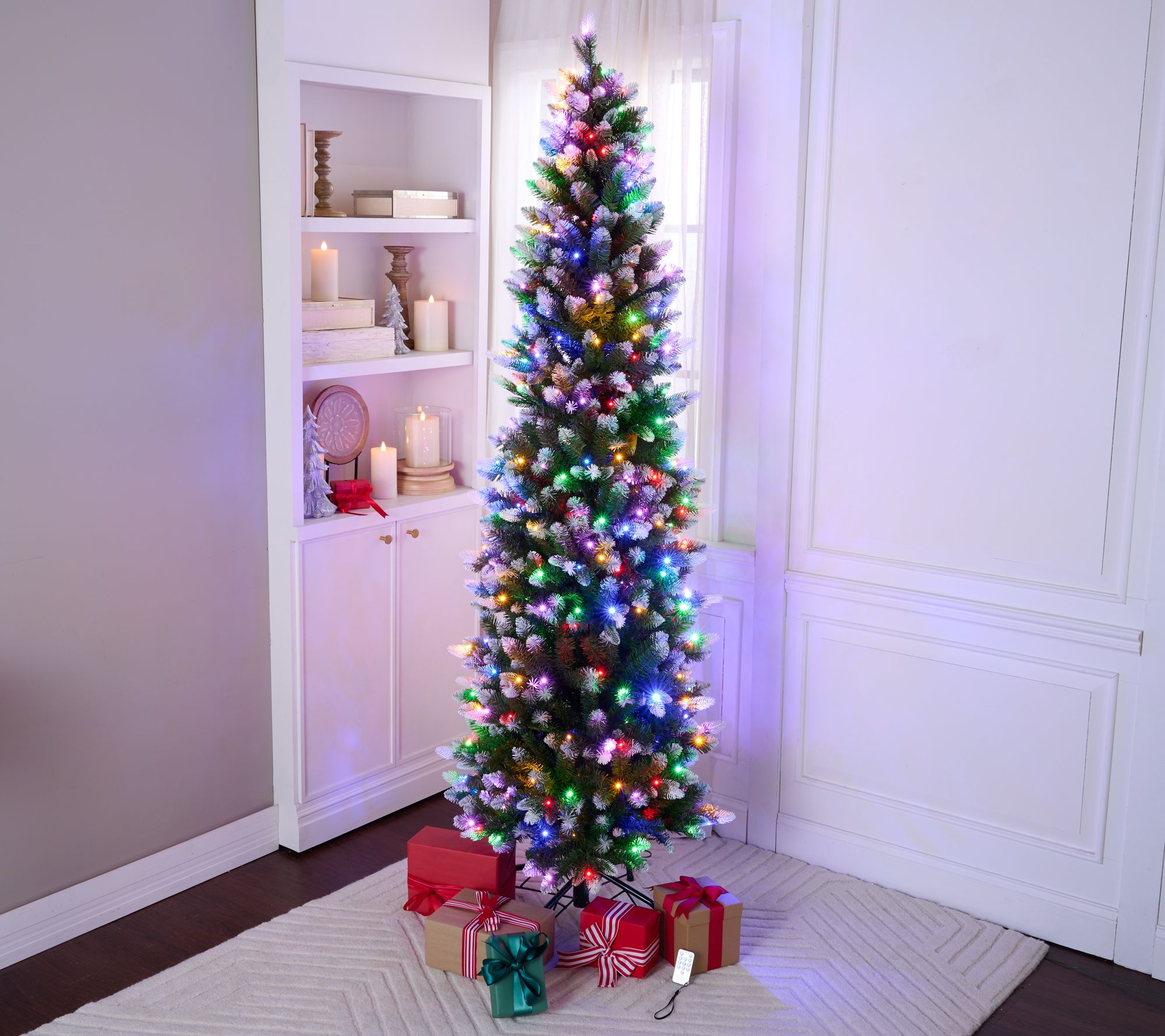 The more the merrier! Aglow in 450 super-bright LED lights, this snow-kissed 8.5' slim tree by Bethlehem Lights creates a spectacular display designed to fit into your space -- a narrow entry hall, a living room corner, or a bedroom nook. (Are you a tree-in-every-room type? Love it!)