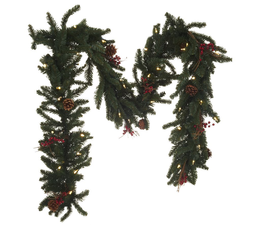Welcome winter with a wonderful garland. This oversized, lifelike berry and pine garland is the festive touch you need on your staircase, mantel, or porch railing. Clusters of red berries, real pinecones, and twig sprigs give it a natural appearance, while 35 LED lights can be set to twinkle, glisten, or stay on for six hours at the same time every night of the season! From Bethlehem Lights.