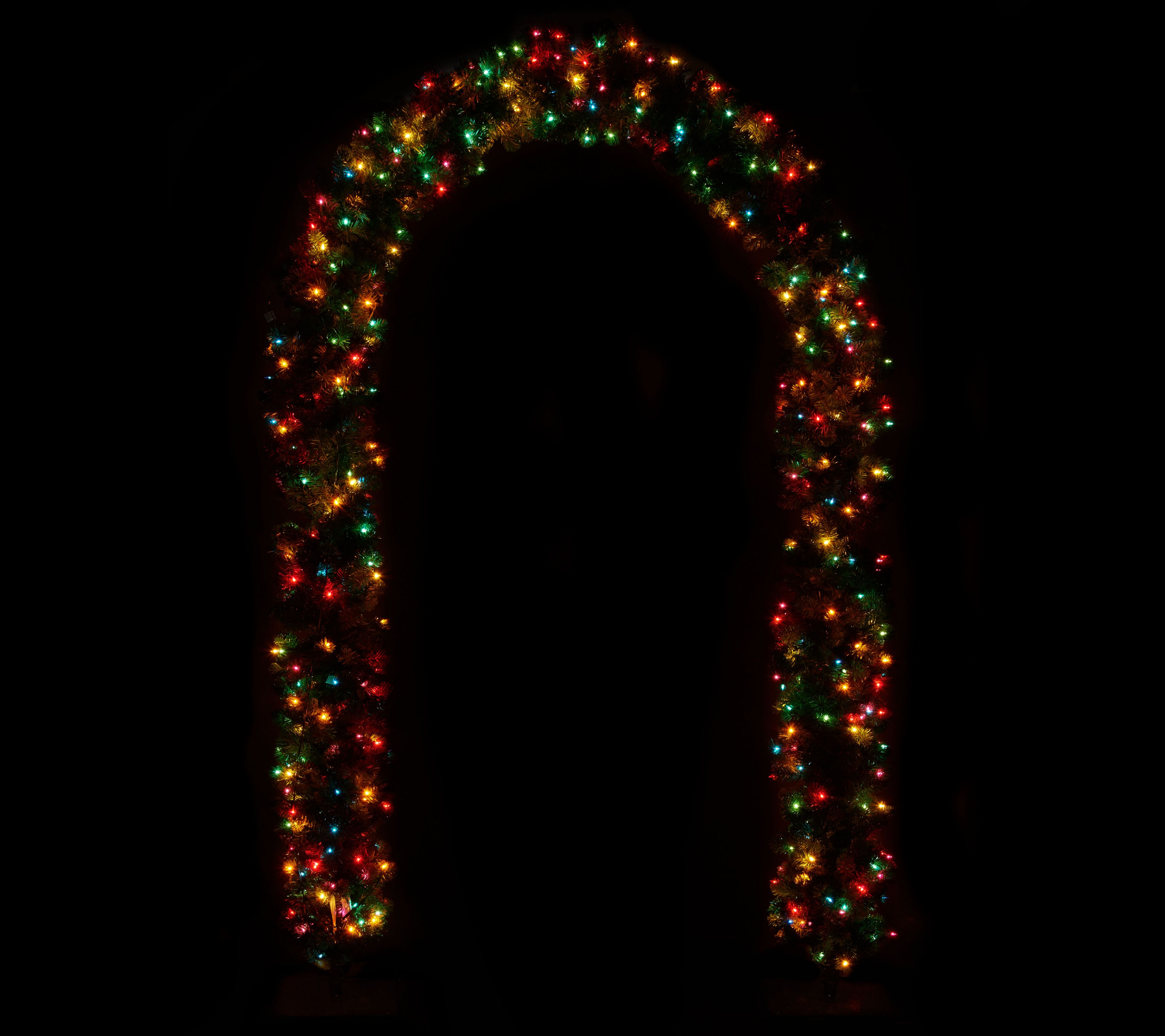 Make an entrance this holiday and dress your front door, walkway, or archway with this festive Bethlehem Lights illuminated green arch. Greet family, friends--even Santa and his helpers--with this spectacular holiday display that says you're in it to win it. From Bethlehem Lights.