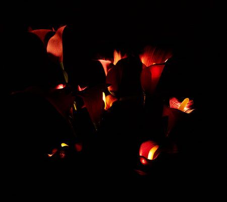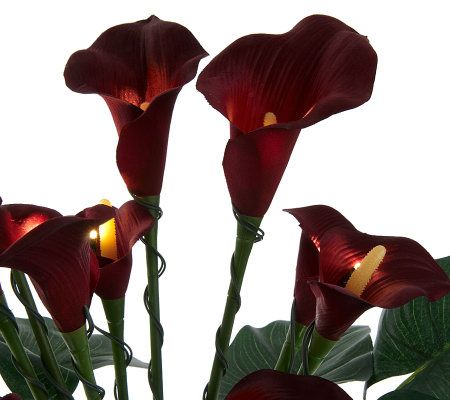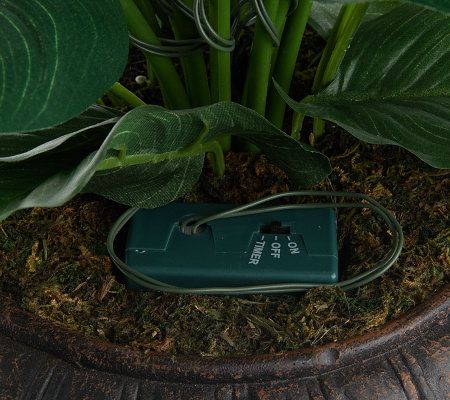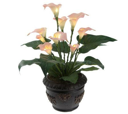 As if the beauty of calla lilies wasn't enough to brighten a room. This lifelike potted calla lily plant lends even more illumination with an LED light on each bloom, for a total of 10 brilliant bulbs. Each light is surrounded by equally lifelike lush green leaves, and the entire plant is placed in a decorative bronzetone fiberglass pot complete with faux moss. Set the timer to have the plant glow for six hours each day. From Bethlehem Lights.