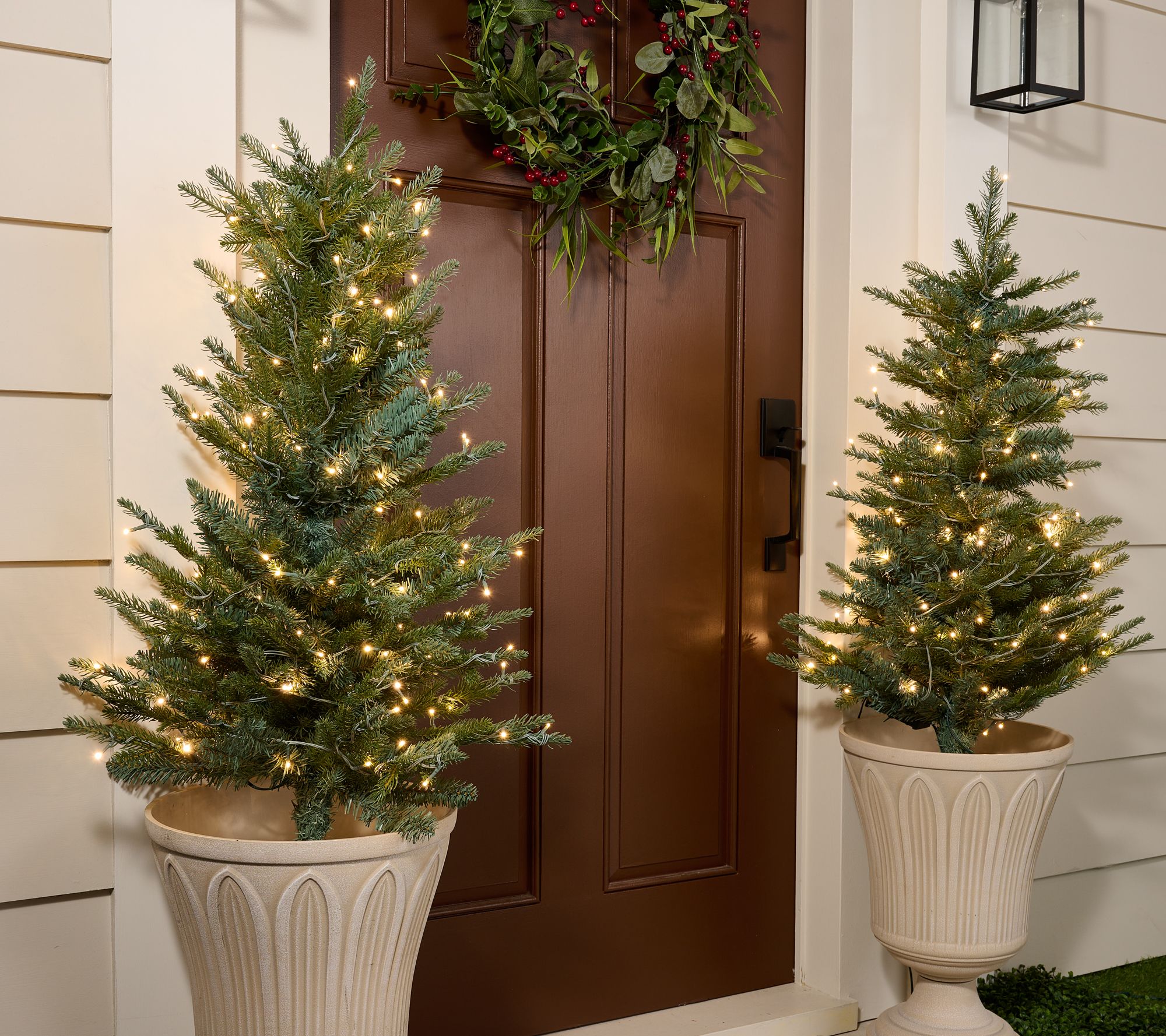 Bethlehem Lights Set of 2 Indoor/Outdoor 3-in-1 LED 3.5' Mini Trees