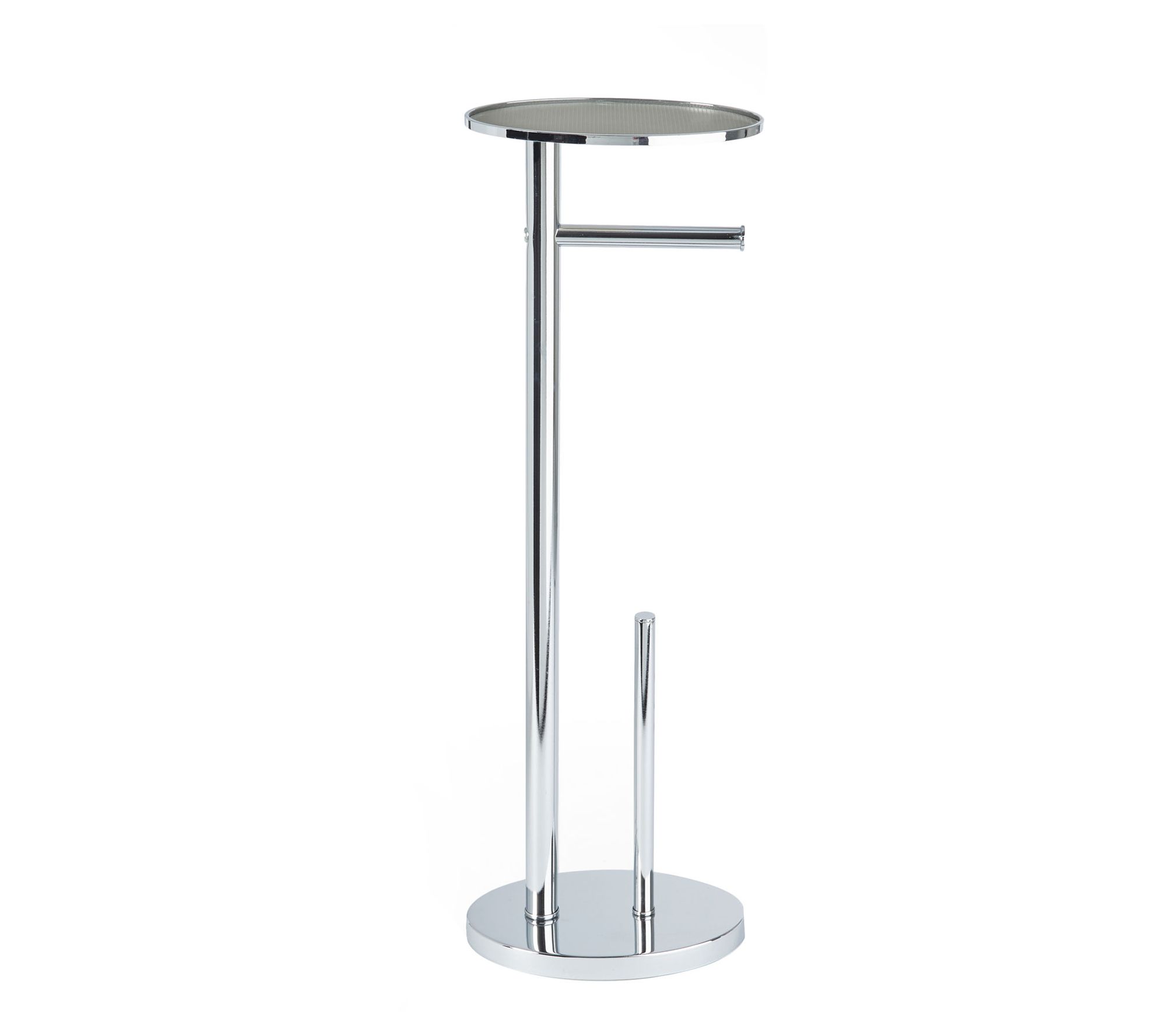 Bring style and function to your bathroom with this toilet caddy that features space for extra rolls and a rubber coated top tray that's perfect for electronic devices or personal wipes. From Better Living.