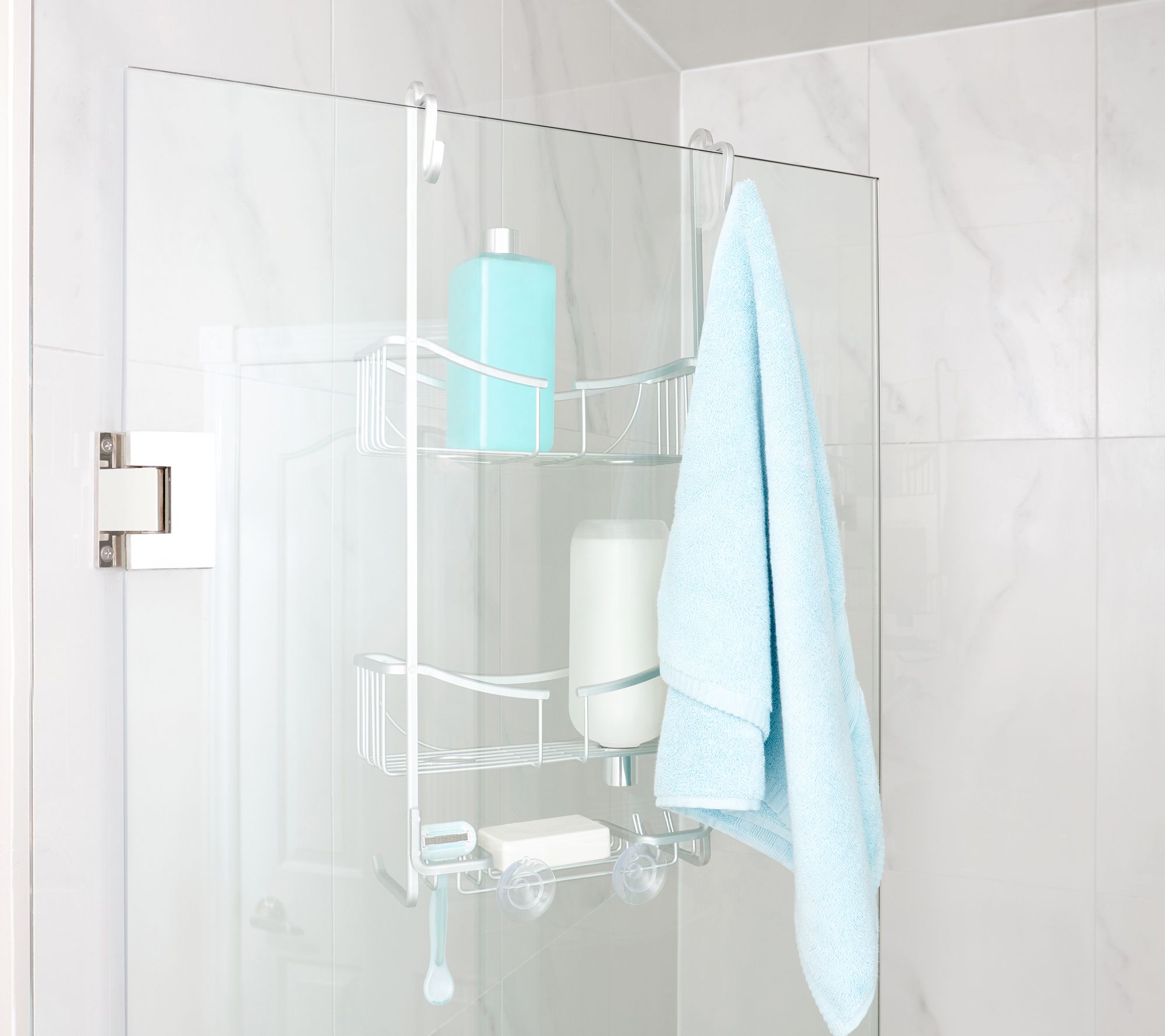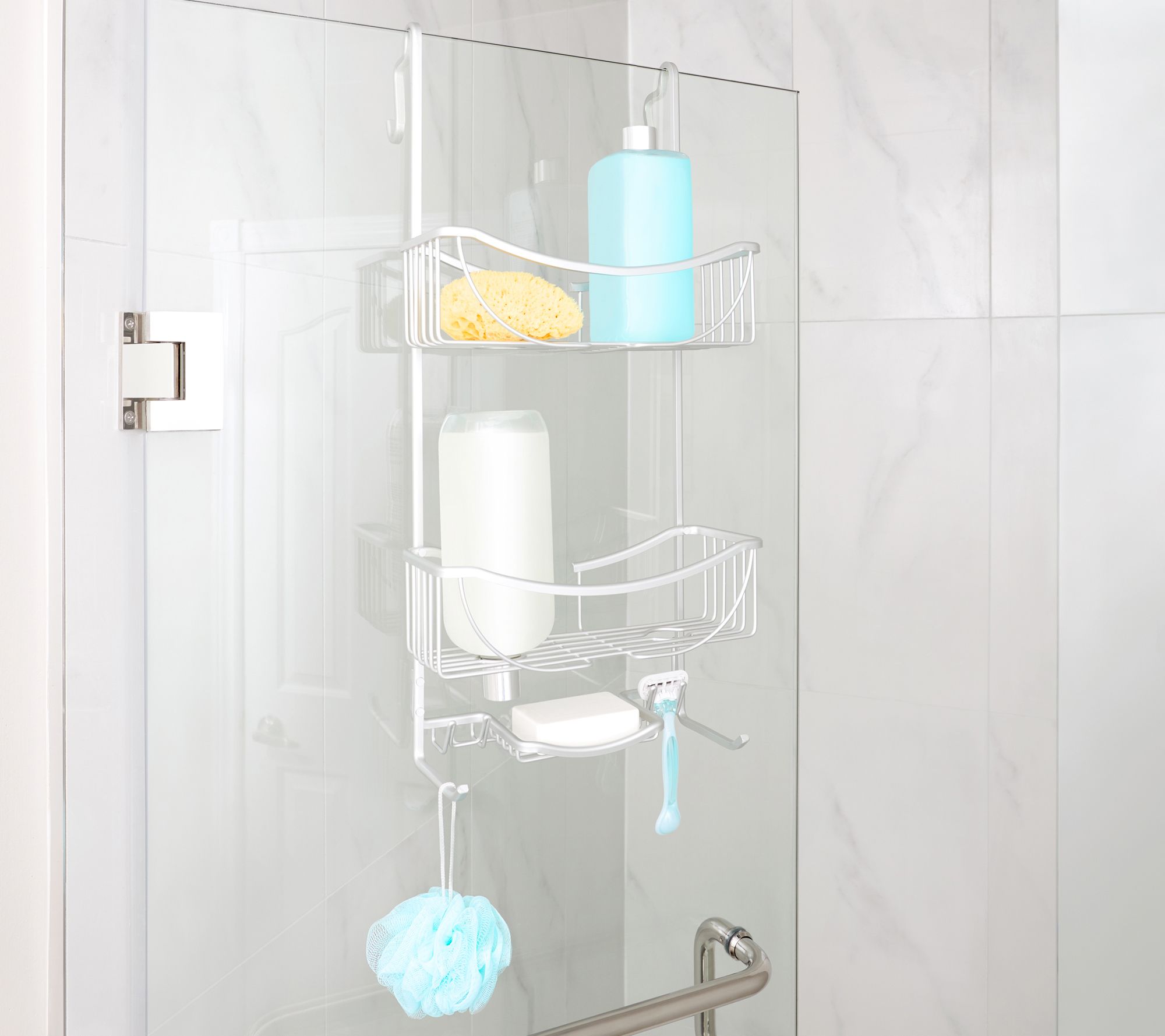 Keep your shower essentials neat, organized, and within easy reach with this over-the-door shower caddy. It's designed with three tiers, providing plenty of room for shampoo, soap, razors, and more. From Better Living.