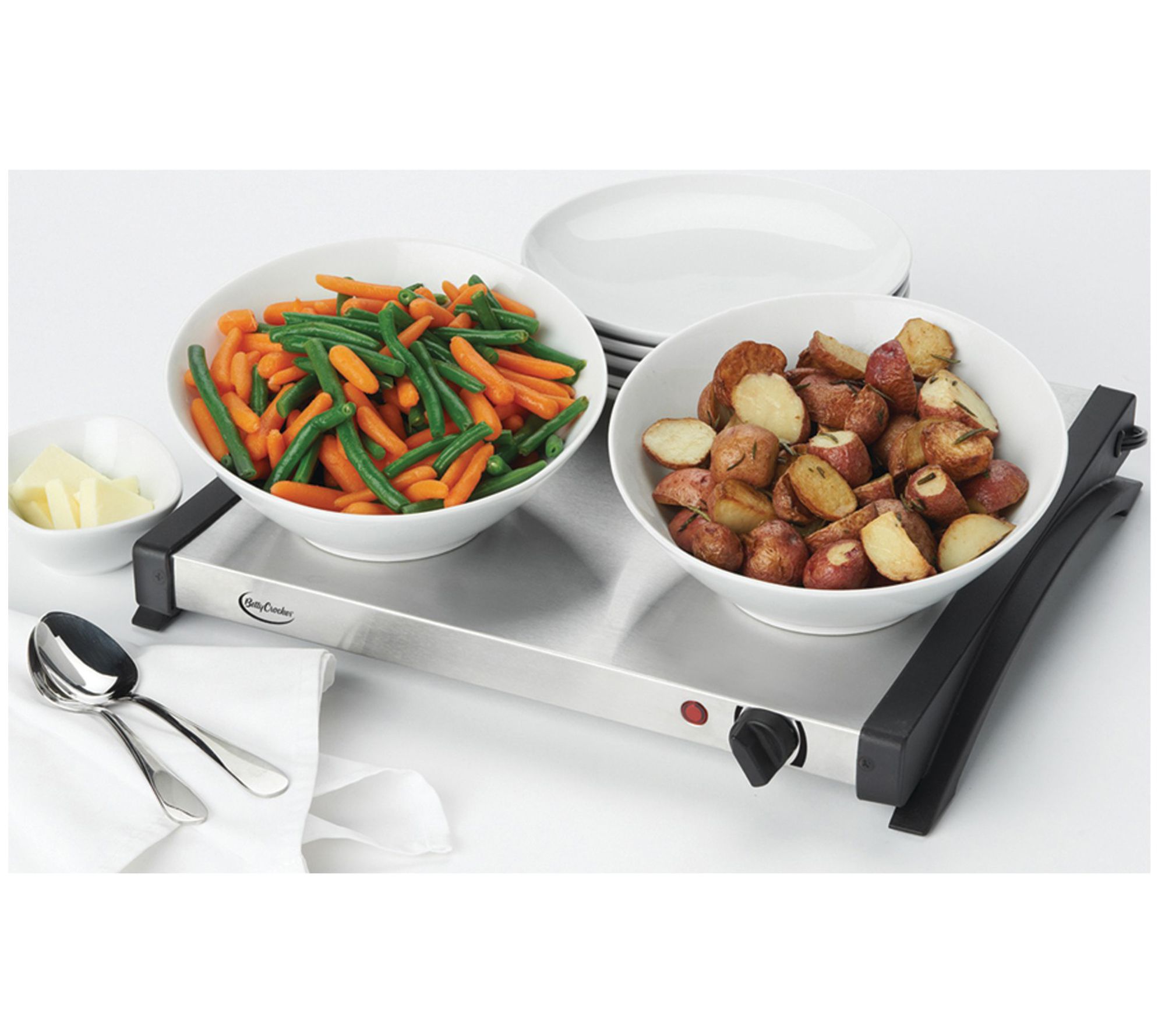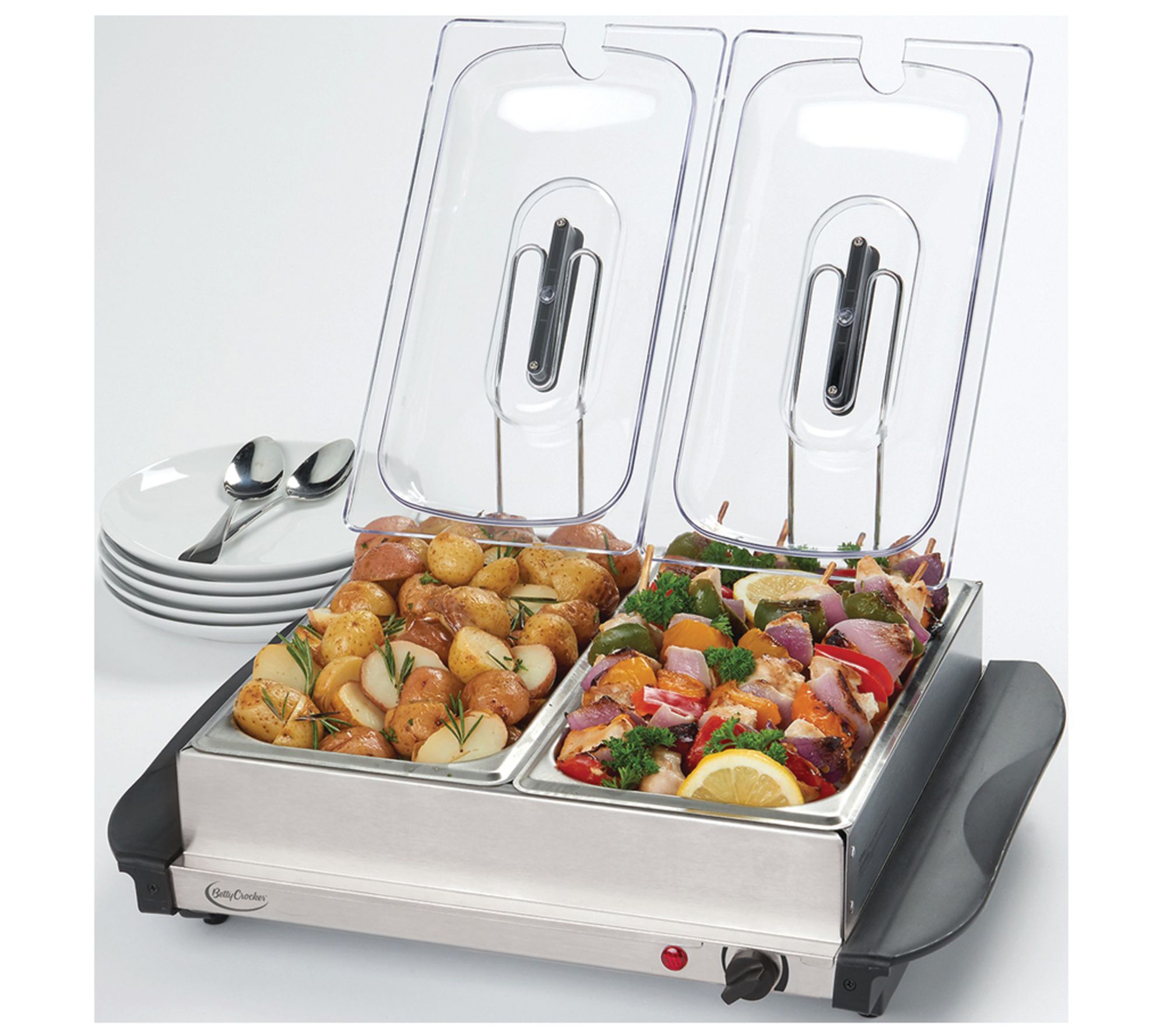 Ideal for entertaining, this stainless-steel buffet server keeps food warm and hungry guests happy. From Betty Crocker.