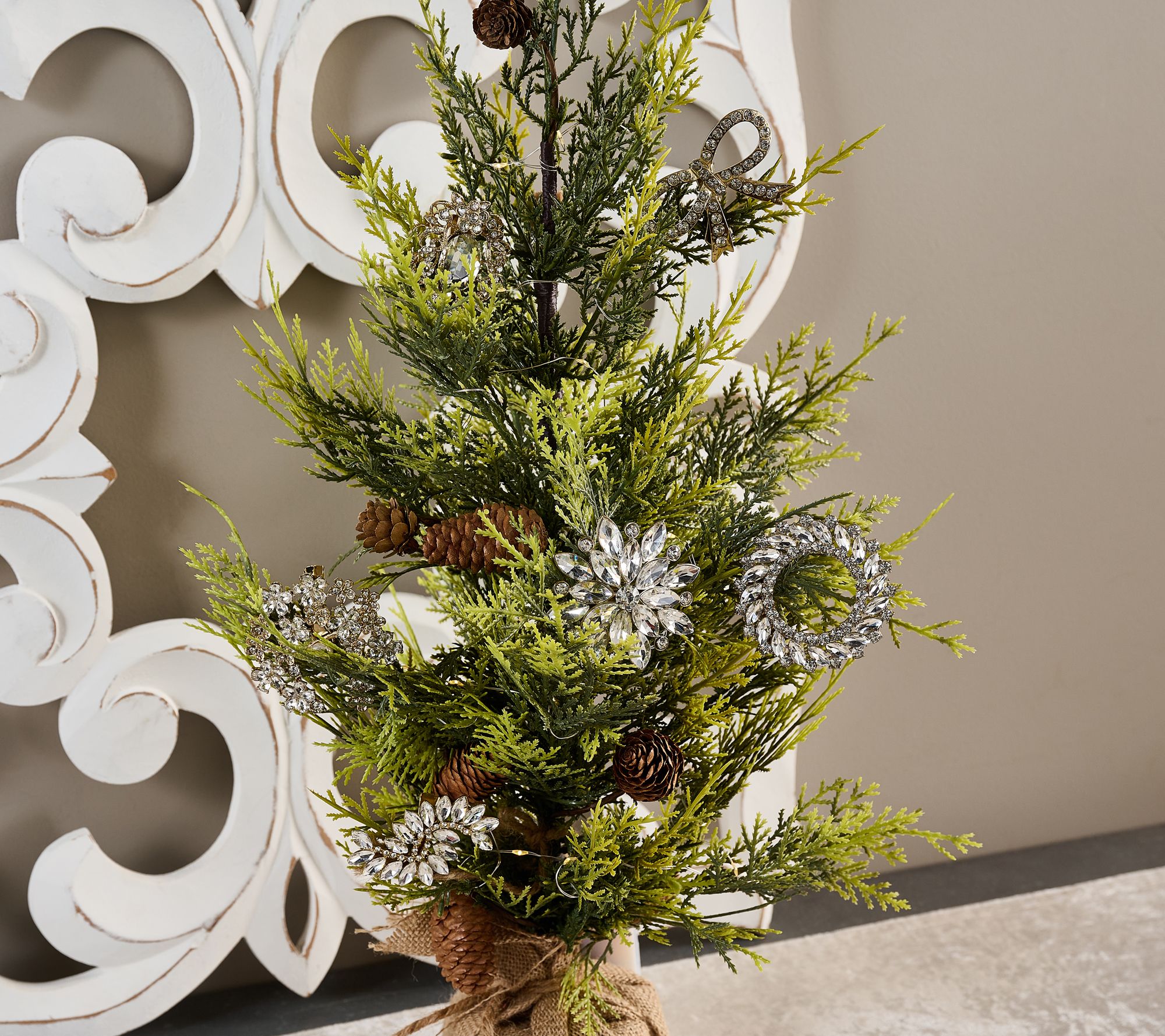 • Includes six mini broach tree clips: one each of bow shape, flower burst, oval burst with drop crystal, closed wreath, fern leaf, and open base wreath with faux pearl
