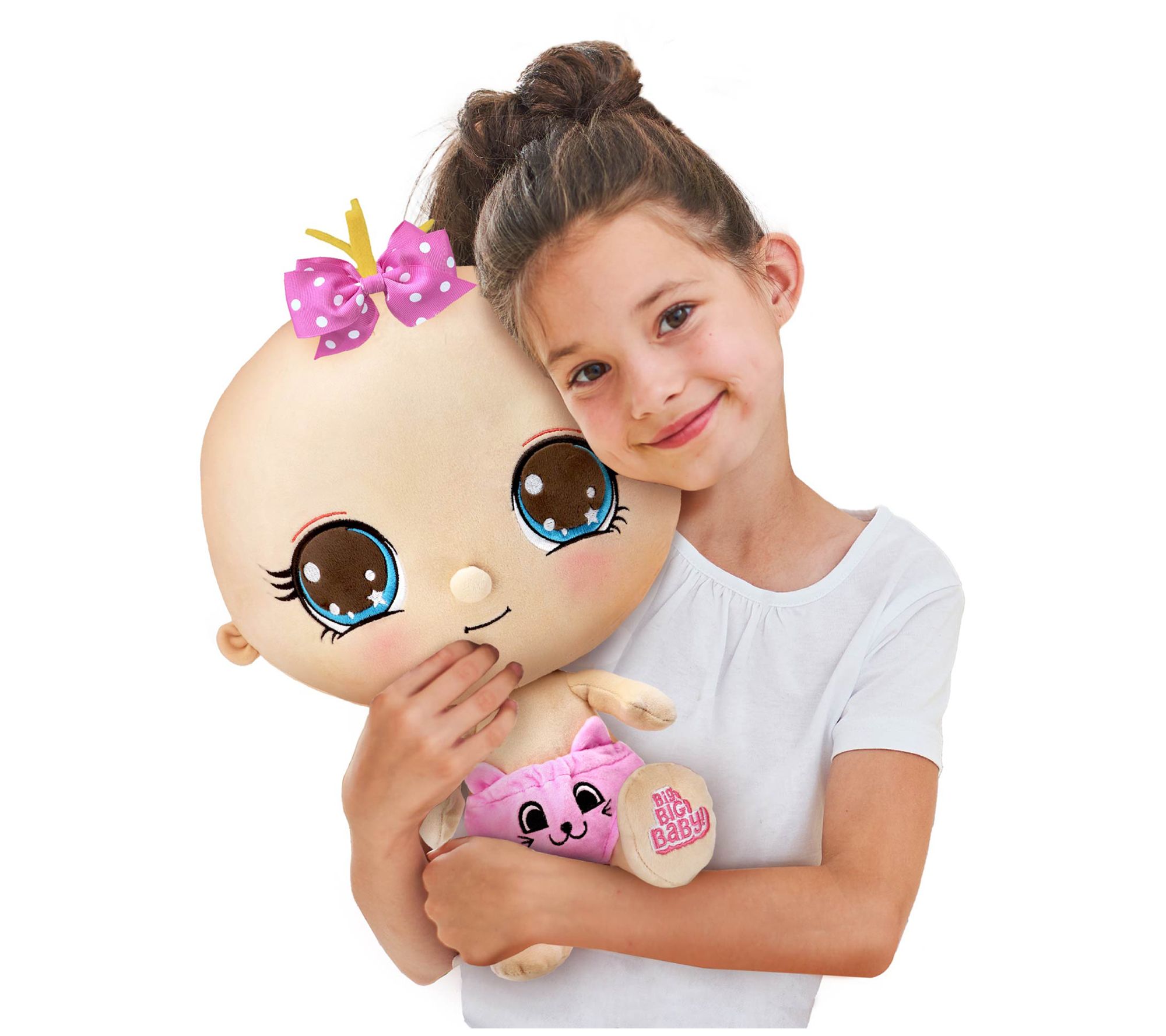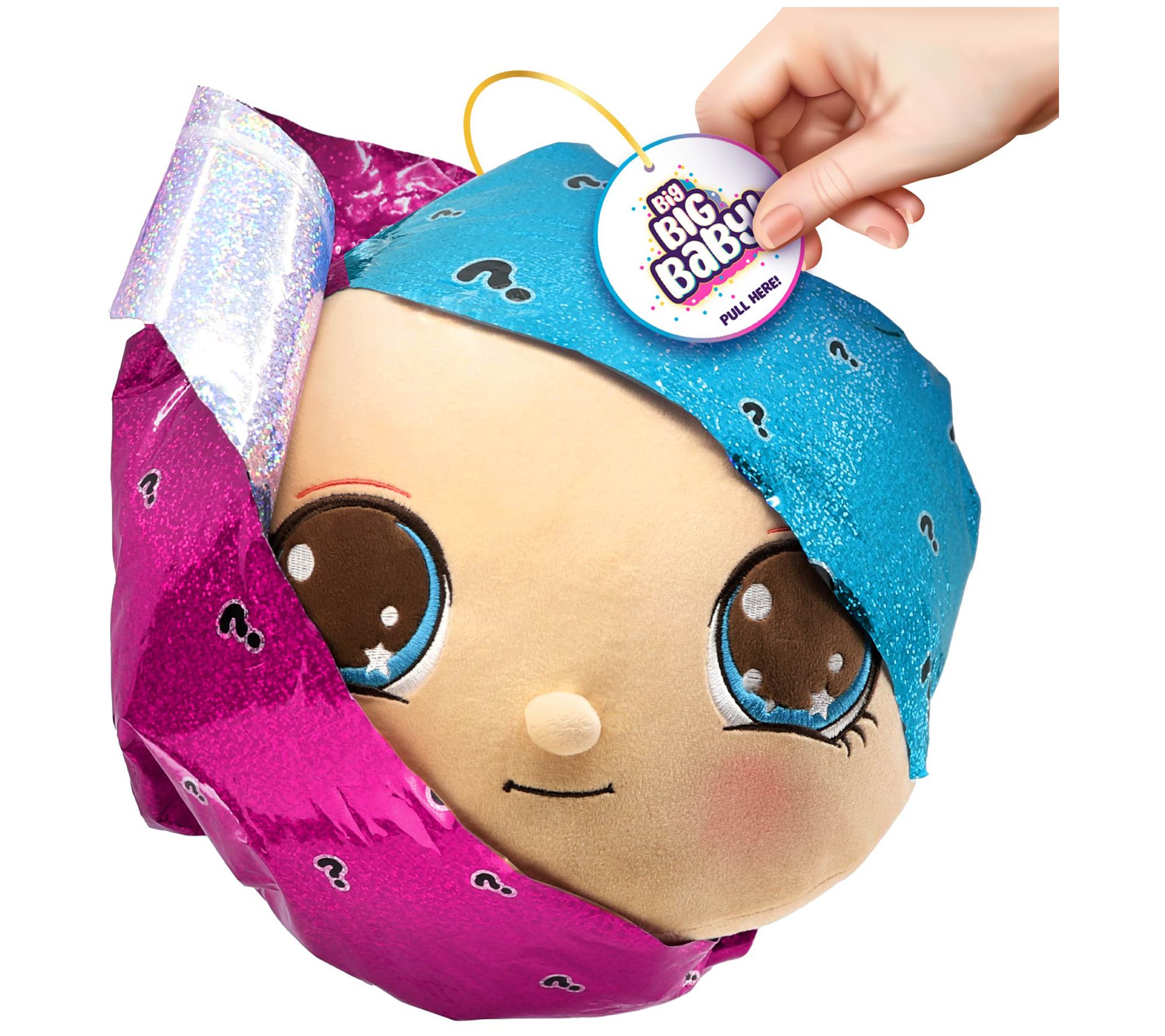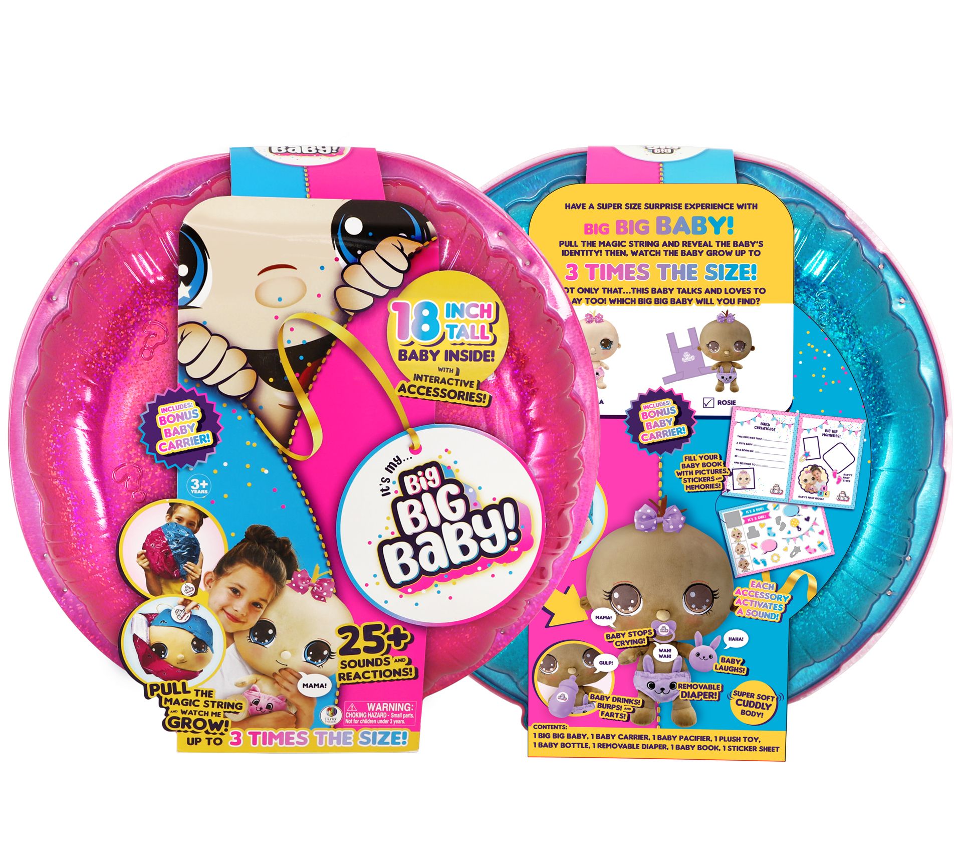 A super-size surprise for your little one, the soft and cuddly Big Big Baby brings a bundle of delightful joy to playtime. Pull the magic string to watch the doll grow up to three times in size. Then the real fun begins as the interactive doll laughs, cries, drinks, and so much more.