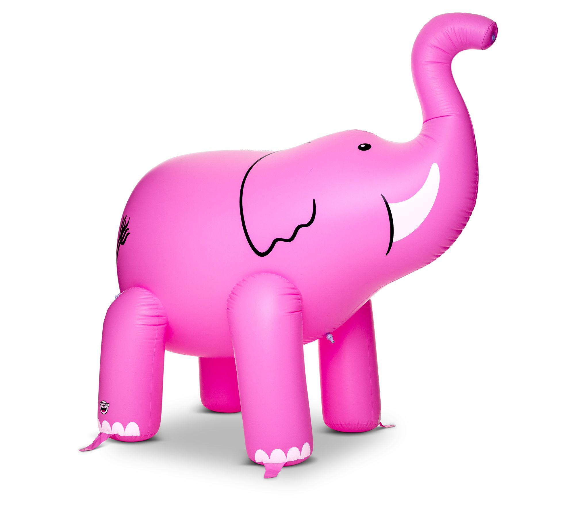 Perfect for birthday parties, heat waves, poolside entertainment, and backyard fun, this huge, pink elephant sprinkler sprays a refreshing stream of water from its long trunk. From BigMouth.