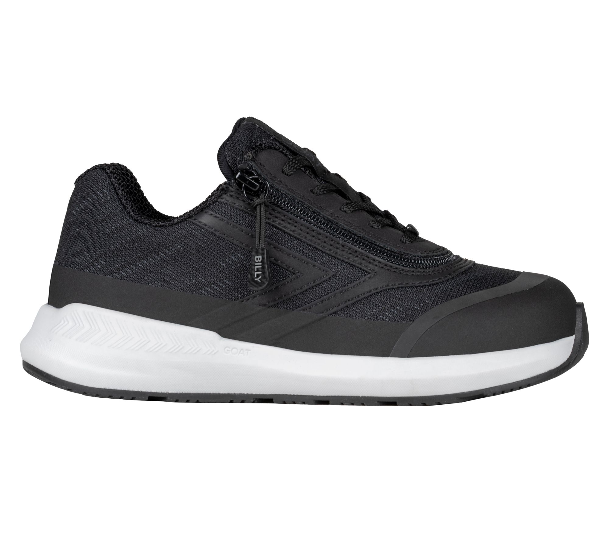 Busy mornings get easier with these kids' athletic shoes, featuring a convenient front zip closure that makes getting out the door a breeze. Designed for all-day play, the roomy toe box gives little feet the space they need to move comfortably through every adventure. From BILLY Footwear.