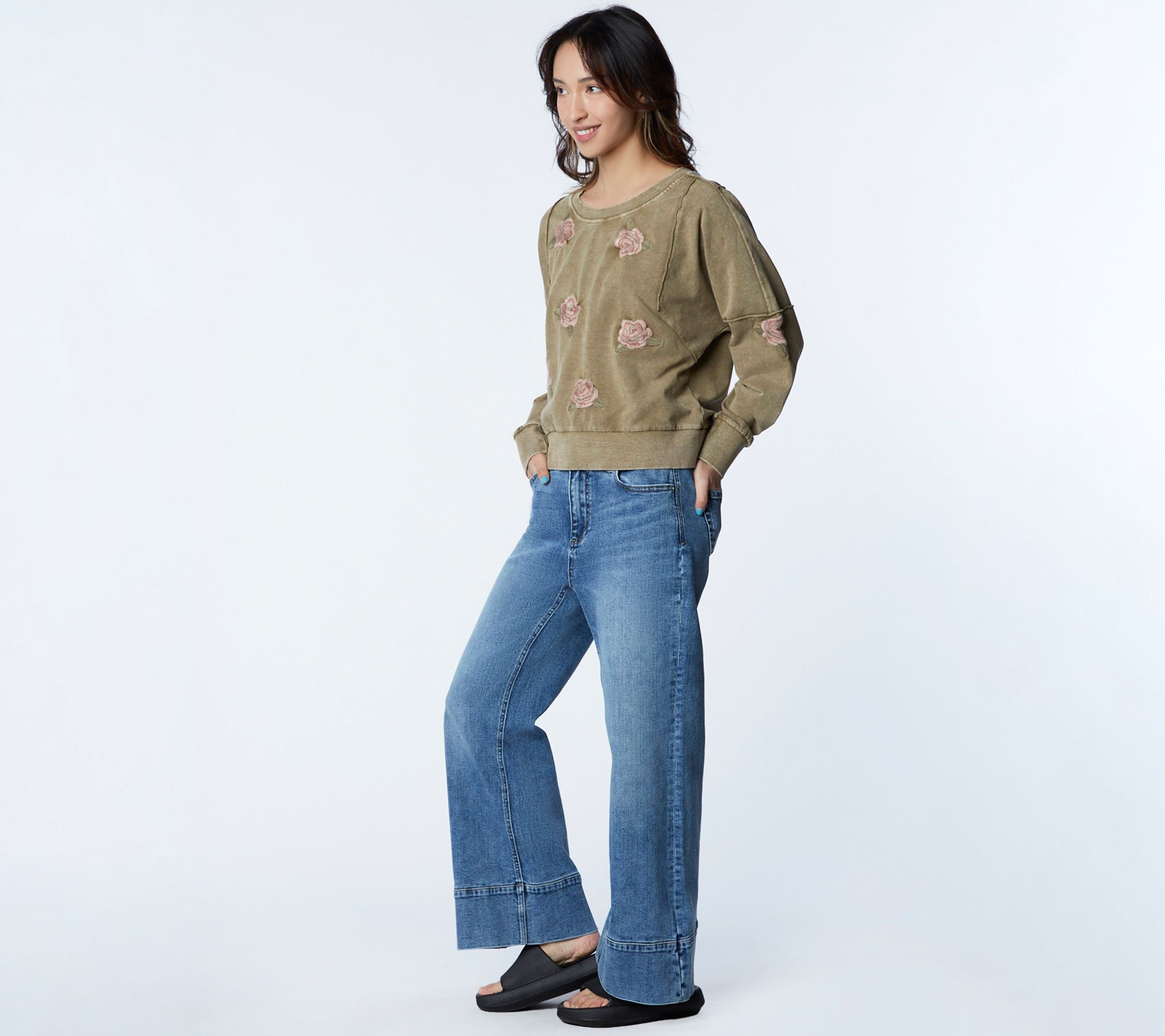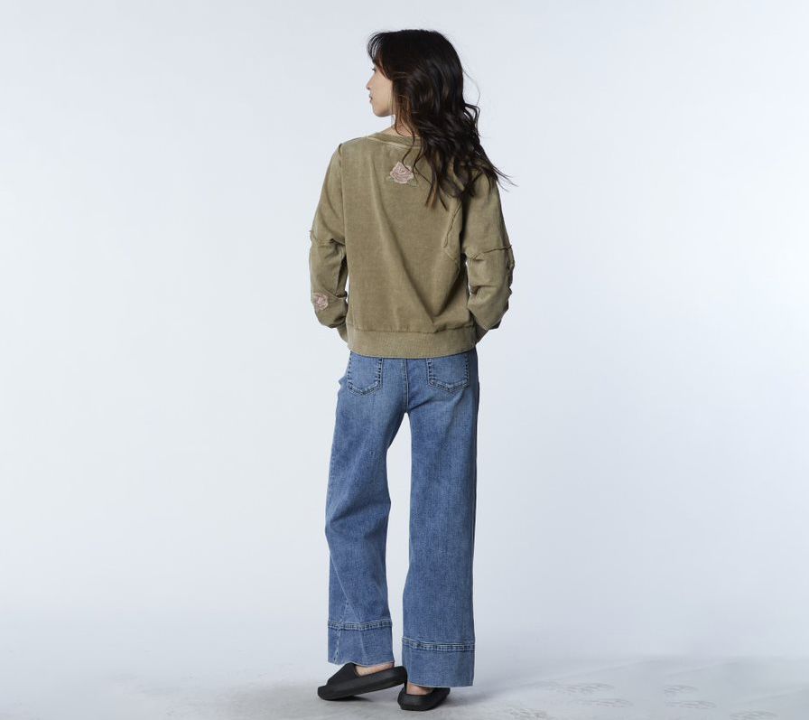 Take some fashion inspiration from the garden with this floral-adorned sweatshirt that blooms with style. From Billy T.