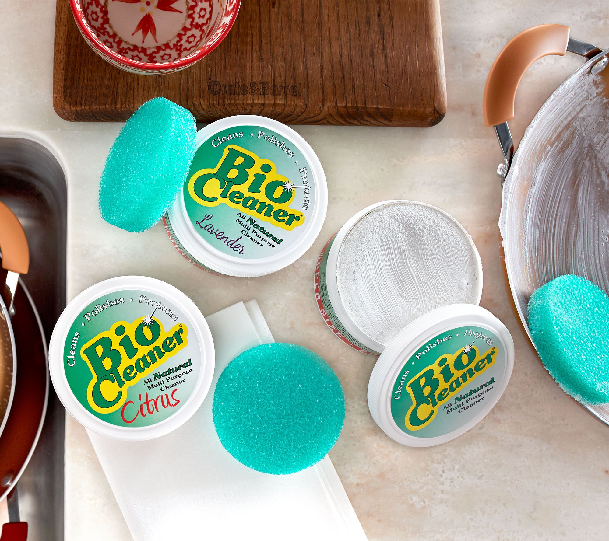 Having one cleaner for every room in your home makes it less of a chore when you know what to reach for. Tough on dirt yet gentle on surfaces, Bio Cleaner multipurpose cleaning clay manages messes in your kitchen, bathroom, and floors--even the outdoors. Why use harsh chemicals when this clay cleans and polishes your surfaces when activated by water? Apply the clay to surfaces you would scrub with the included sponges to help breakdown dirt with this heavy-duty cleaner.