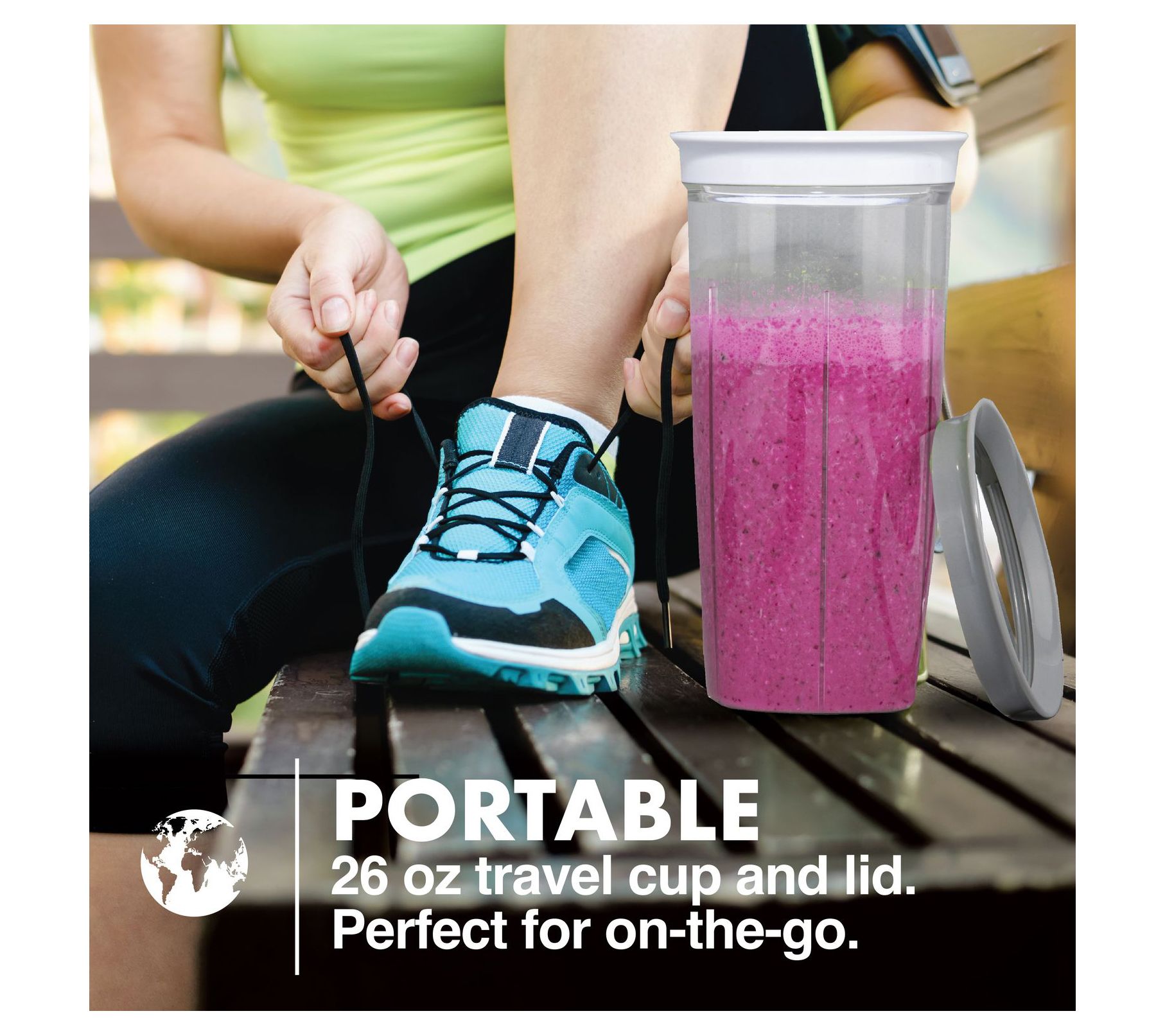 Blend up your favorite smoothies, shakes, or protein drinks anywhere with this powerful rechargeable personal blender. Lightweight and designed for life on the move, it features a 26-oz cup and slip lid for easy sipping at the gym, office, or during travel. Unleash big blender performance from a compact, easy-to-use design you can take wherever your day leads. From Bionic Blade.