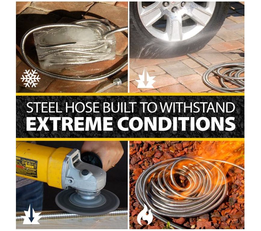 An essential outdoor accessory for the homeowner, this ultra durable stainless steel garden hose may be tough enough to withstand the elements, but it's also lightweight and flexible, making it extra easy to handle and store. From Bionic Steel.