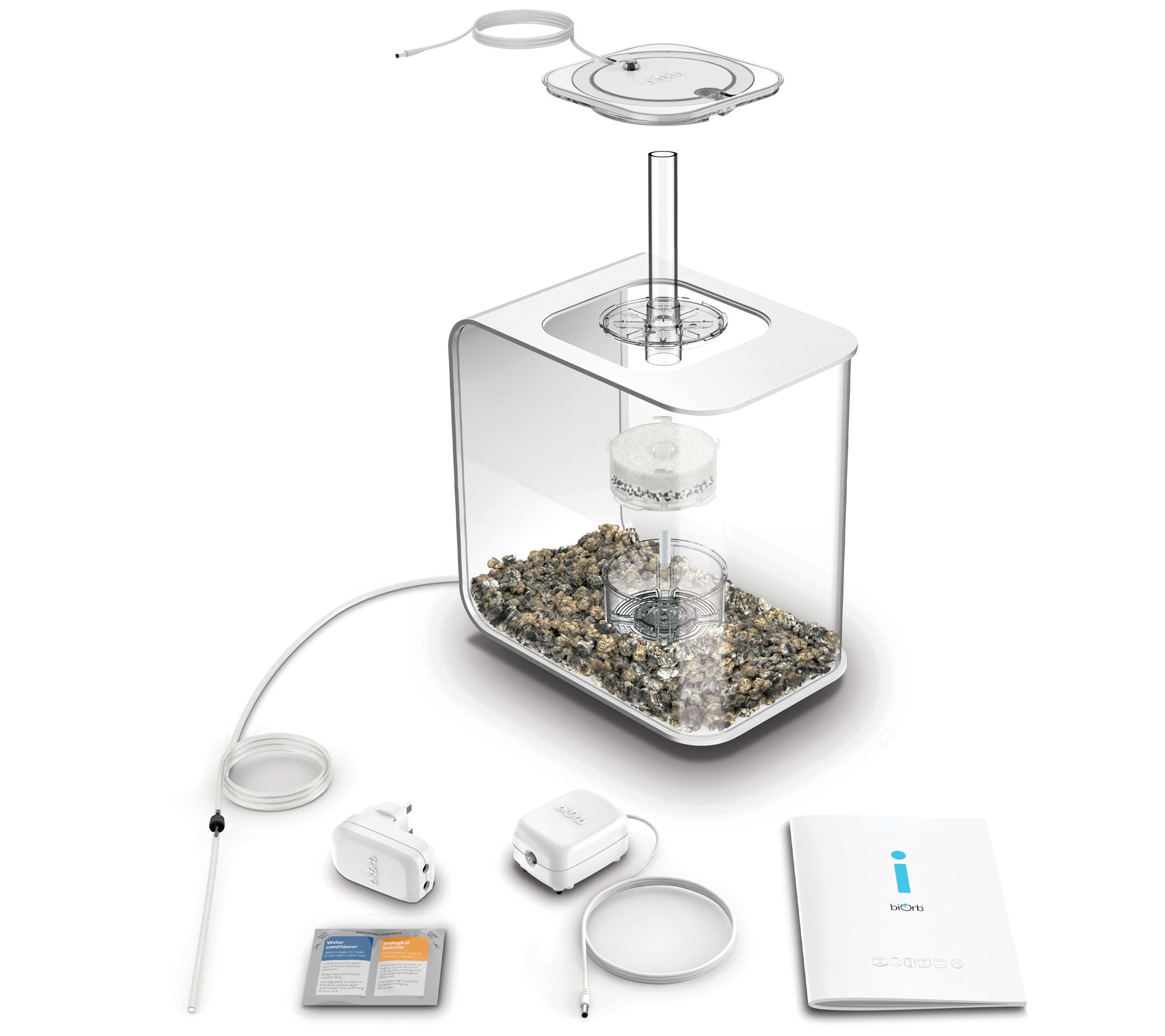 • Includes Classic 15 aquarium, air pump, LED lighting and remote, transformer, water treatments, air stone, filter cartridge, ceramic media, two AAA batteries, and manual