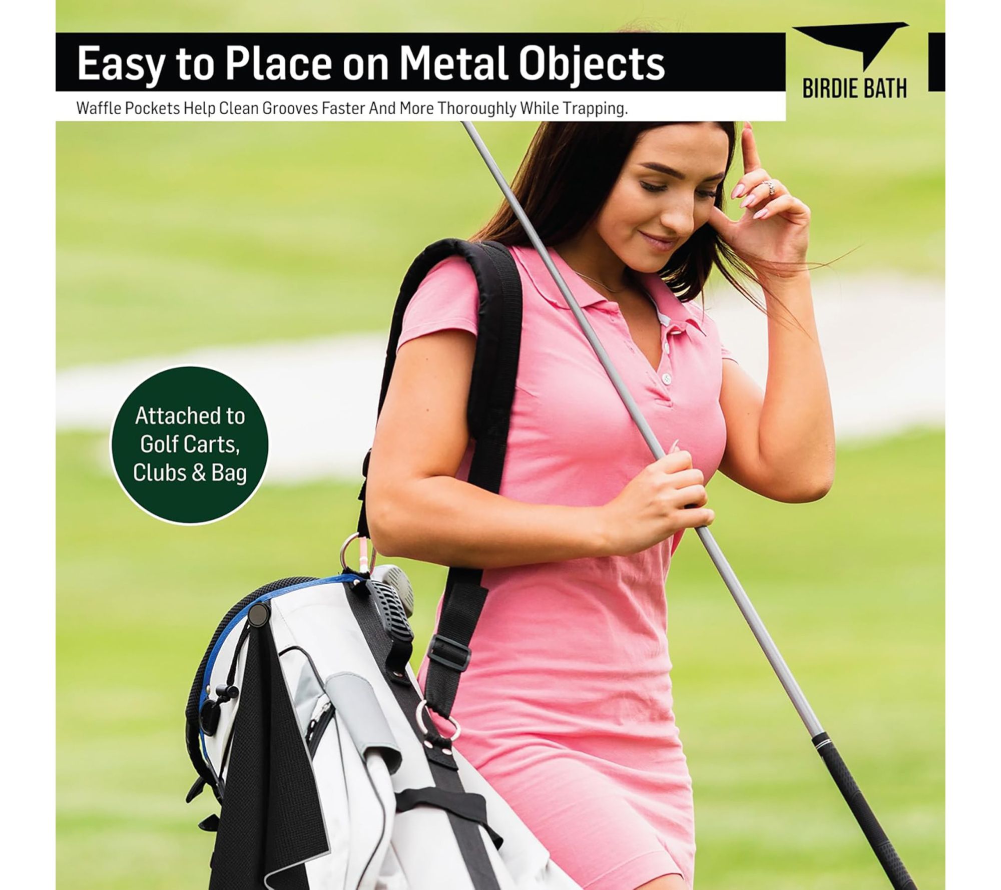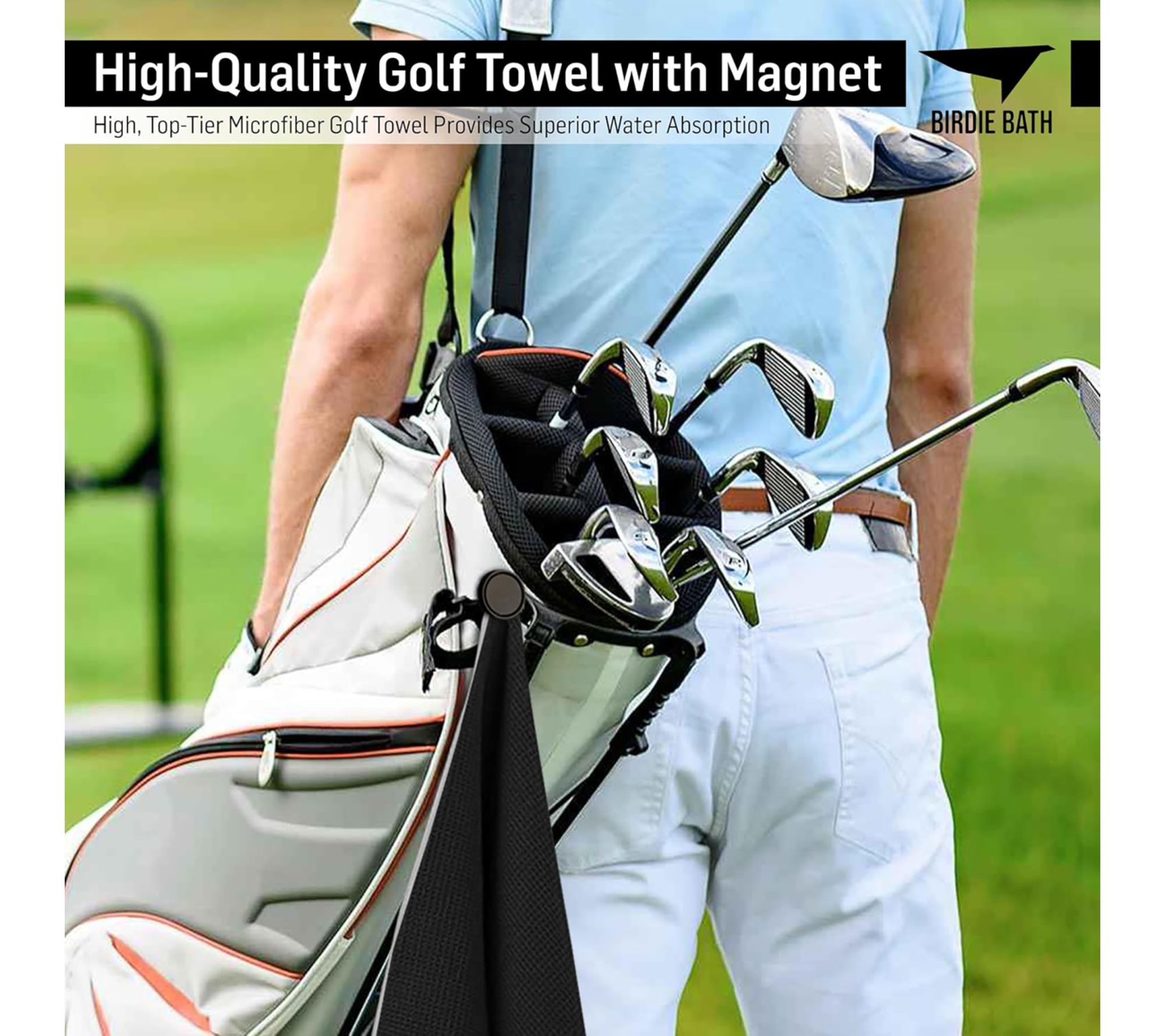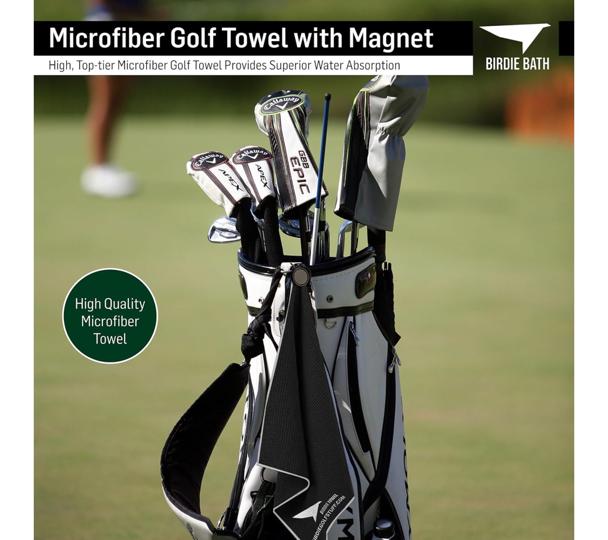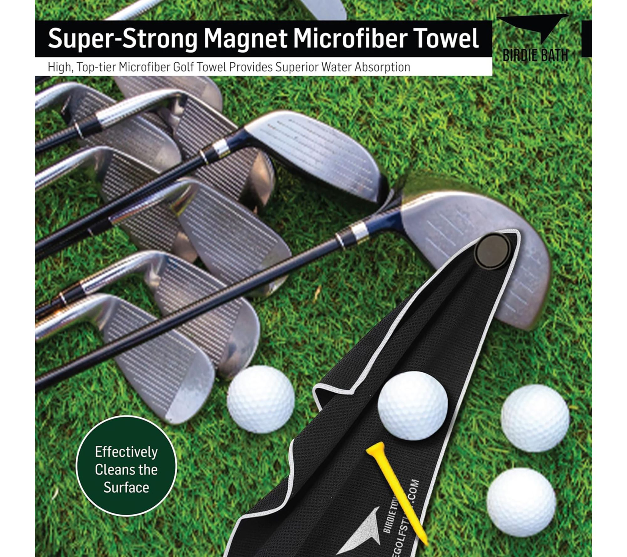 Say goodbye to lost golf towels and hello to convenience with this magnetic golf towel. Its deep waffle pockets are perfect for trapping dirt, grass, and moisture, making club and hand cleaning a breeze. The powerful magnet ensures you always have your towel where you need it, whether on the course, in your garage, or at the gym. From Birdie Golf.