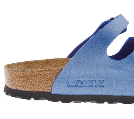 Give your feet a vacation. The original Birkenstock footbed follows the natural shape of your foot for maximum comfort, and molded heel cups provide added stability. Adjust all three straps for a personalized fit. They're made with Birko-Flor(TM) uppers, a man-made material that's easy to care for and requires little break-in time.