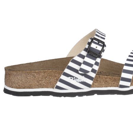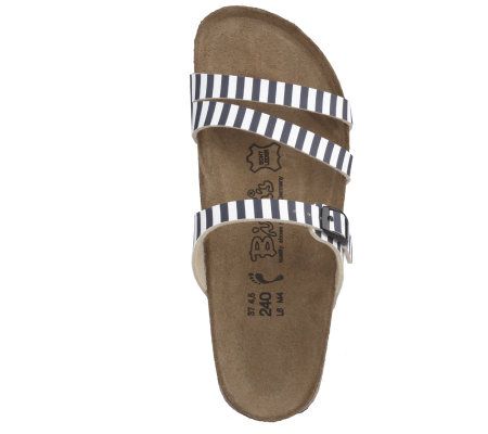 Ahoy, matey! Nautical stripes lend fun flair to these multi-strap sandals--perfect if you're a sea-faring fashionista or a stylish landlubber. An adjustable strap allows you to achieve the perfect fit. From Birki's Footwear.