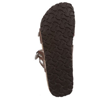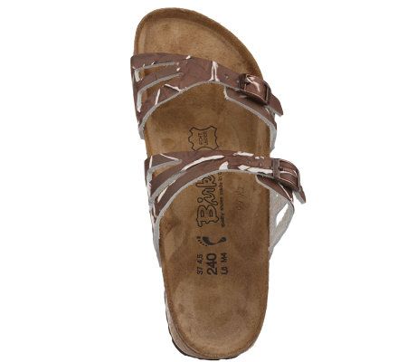 • Leather upper/footbed liner; natural cork footbed; EVA sole