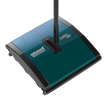 A clean sweep. This classic floor sweeper is the perfect way to rid your floors of debris without having to lug the vacuum from room to room. Its dual rotating brushes are ideal for picking up large debris, and they--in combination with the soft rubber wheels--work especially well on low-pile carpets and bare floors. From Bissell.