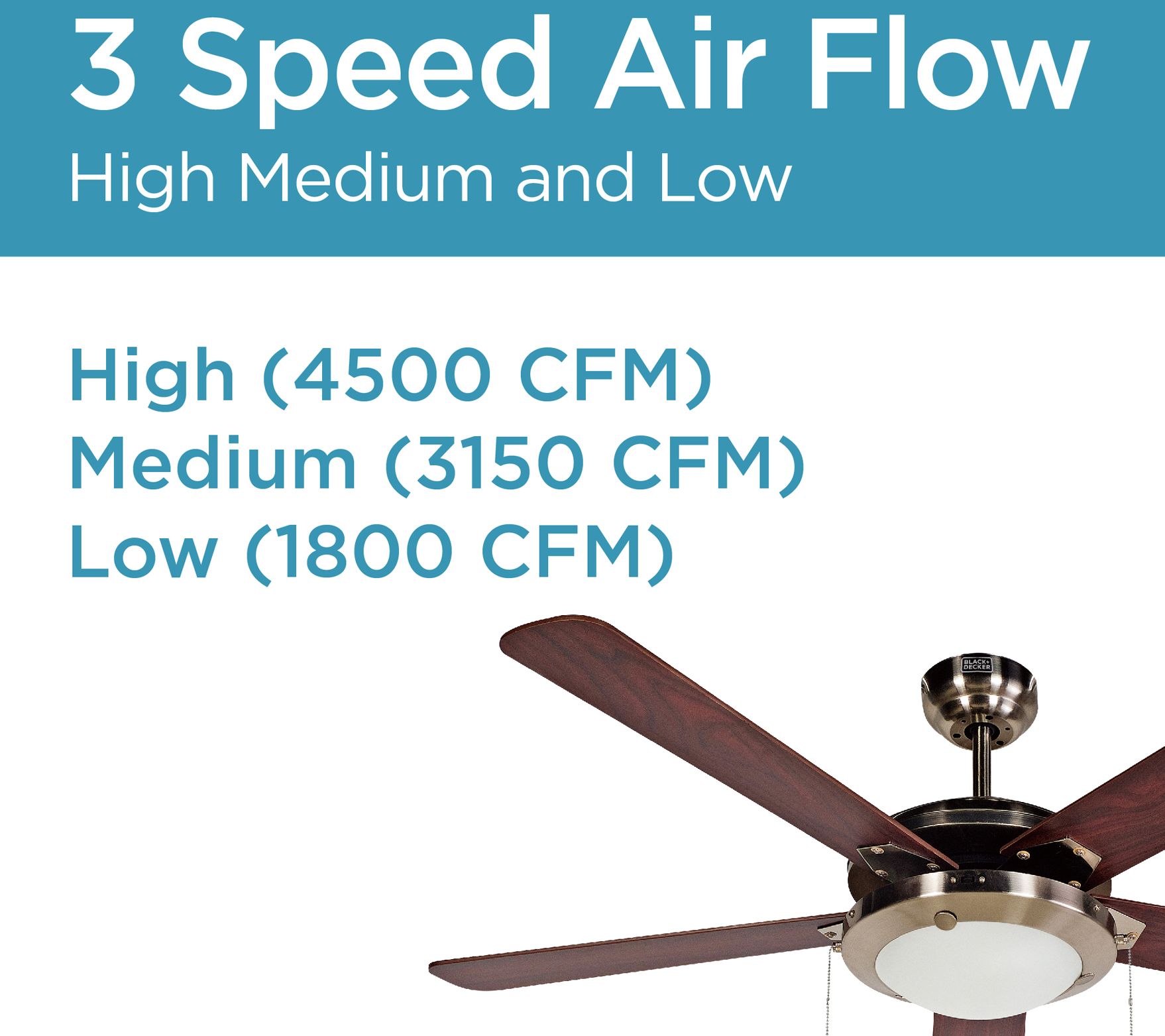 Bring a warm glow and a billowy breeze to your space with this art-deco-inspired ceiling fan, featuring five reversible blades and a frosted white shade to soften the look. From BLACK+DECKER.