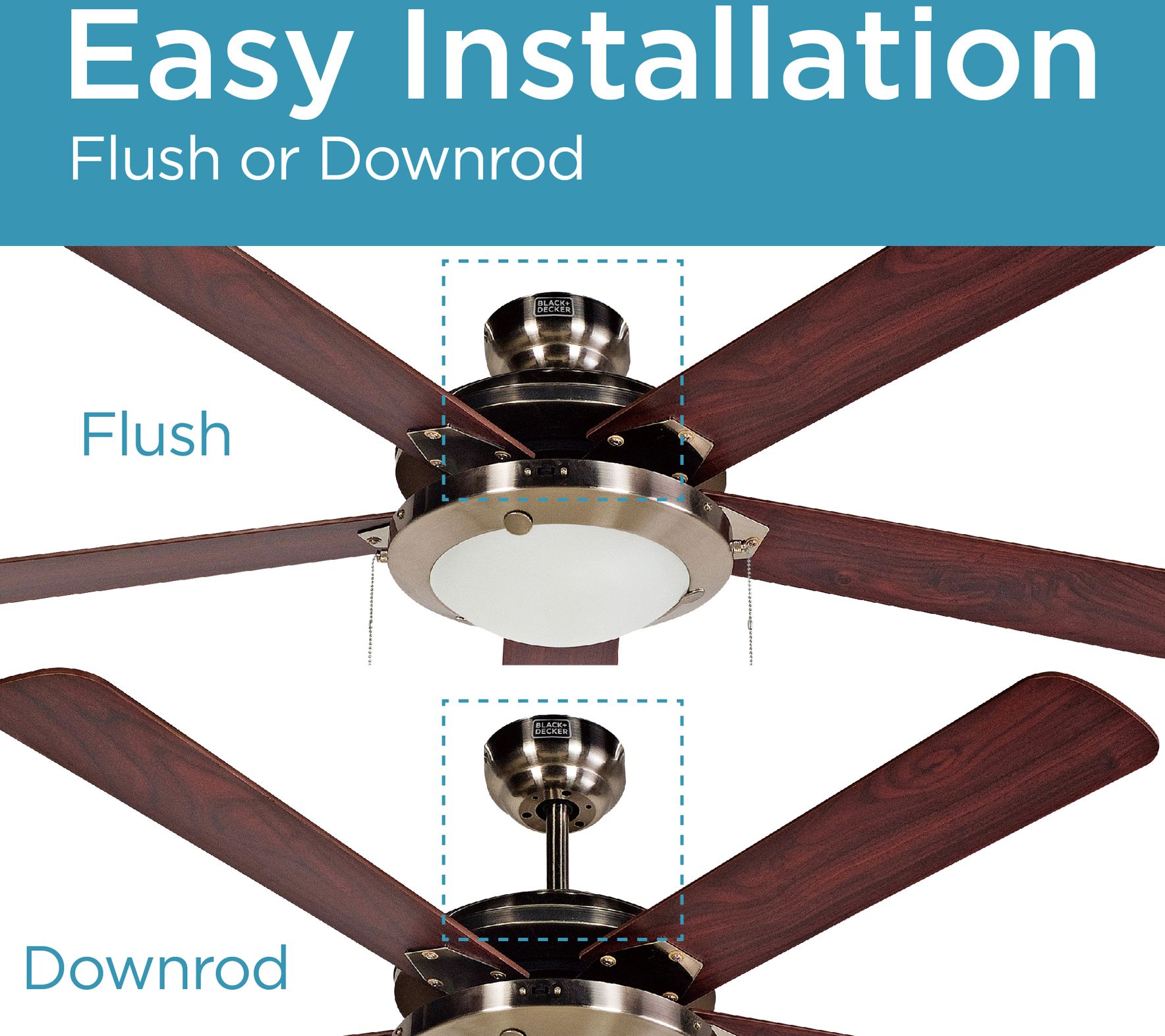 BLACK+DECKER 52 in. Ceiling Fa n with Pull Cha in,Brown