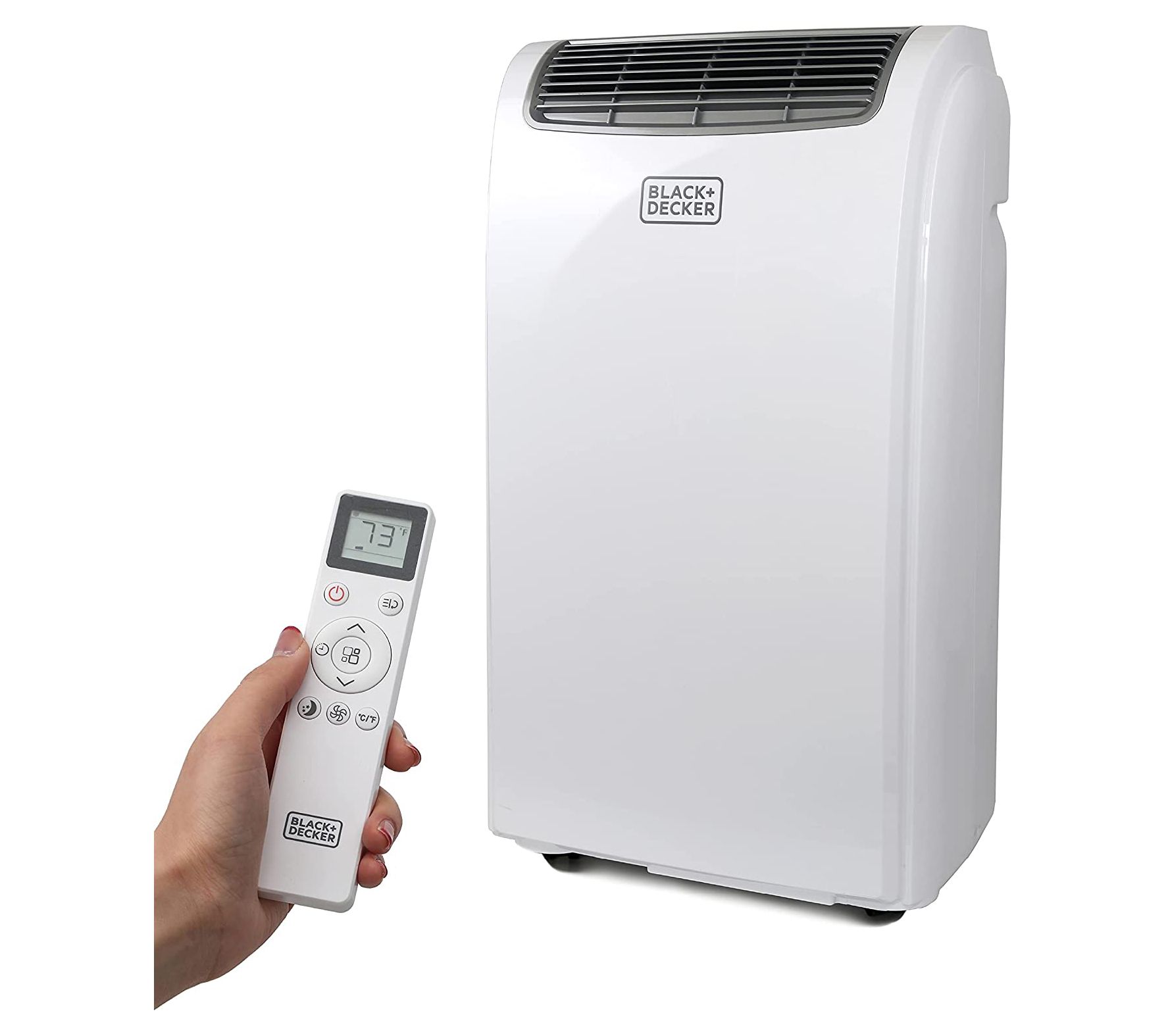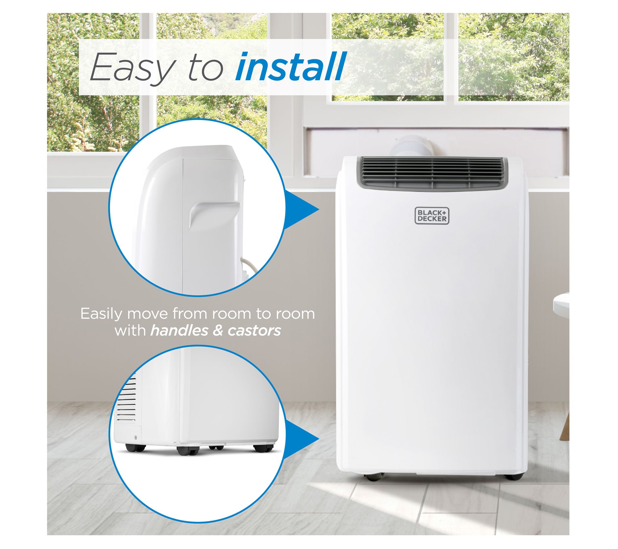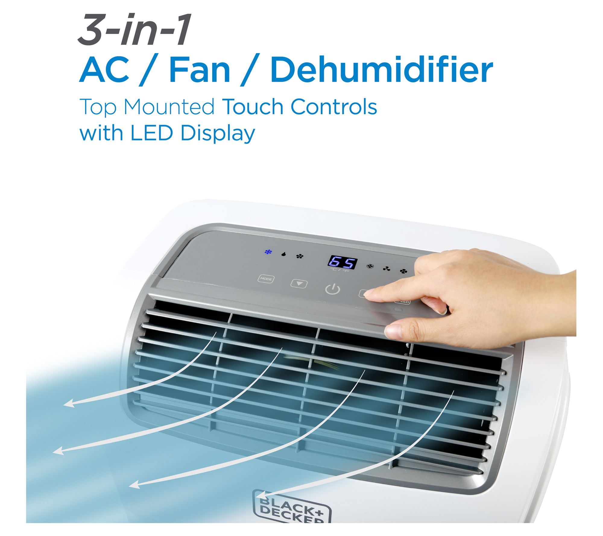 Regulate your indoor climate with the multifunctionality of this portable air conditioner boasting a built-in dehumidifier and a convenient remote control. From BLACK+DECKER.
