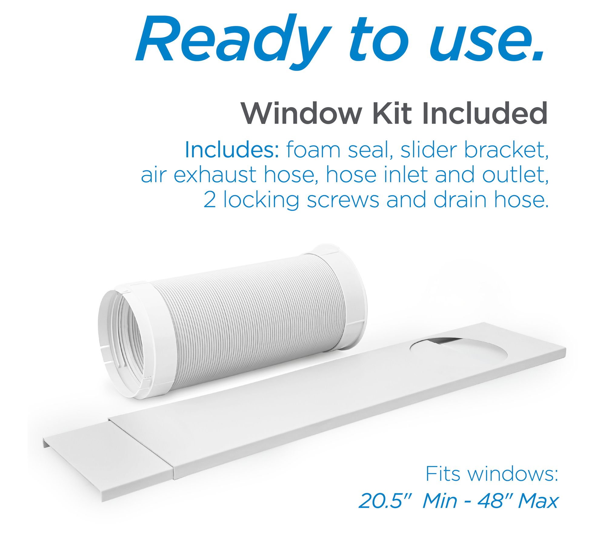 • Includes BPT06WTB portable air conditioner, window kit, remote control, and manual
