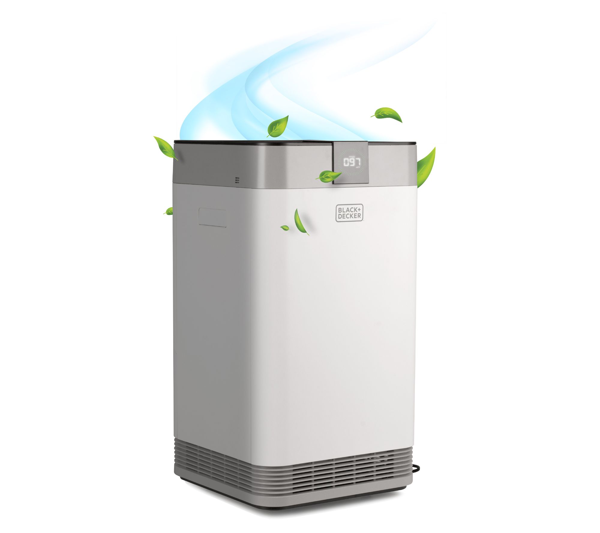 Designed for large rooms, the Black+Decker BAPUV350 air purifier features a four-stage filtration system. The touch panel control with a digital display and real-time air quality monitoring make it user-friendly. From Black+Decker.