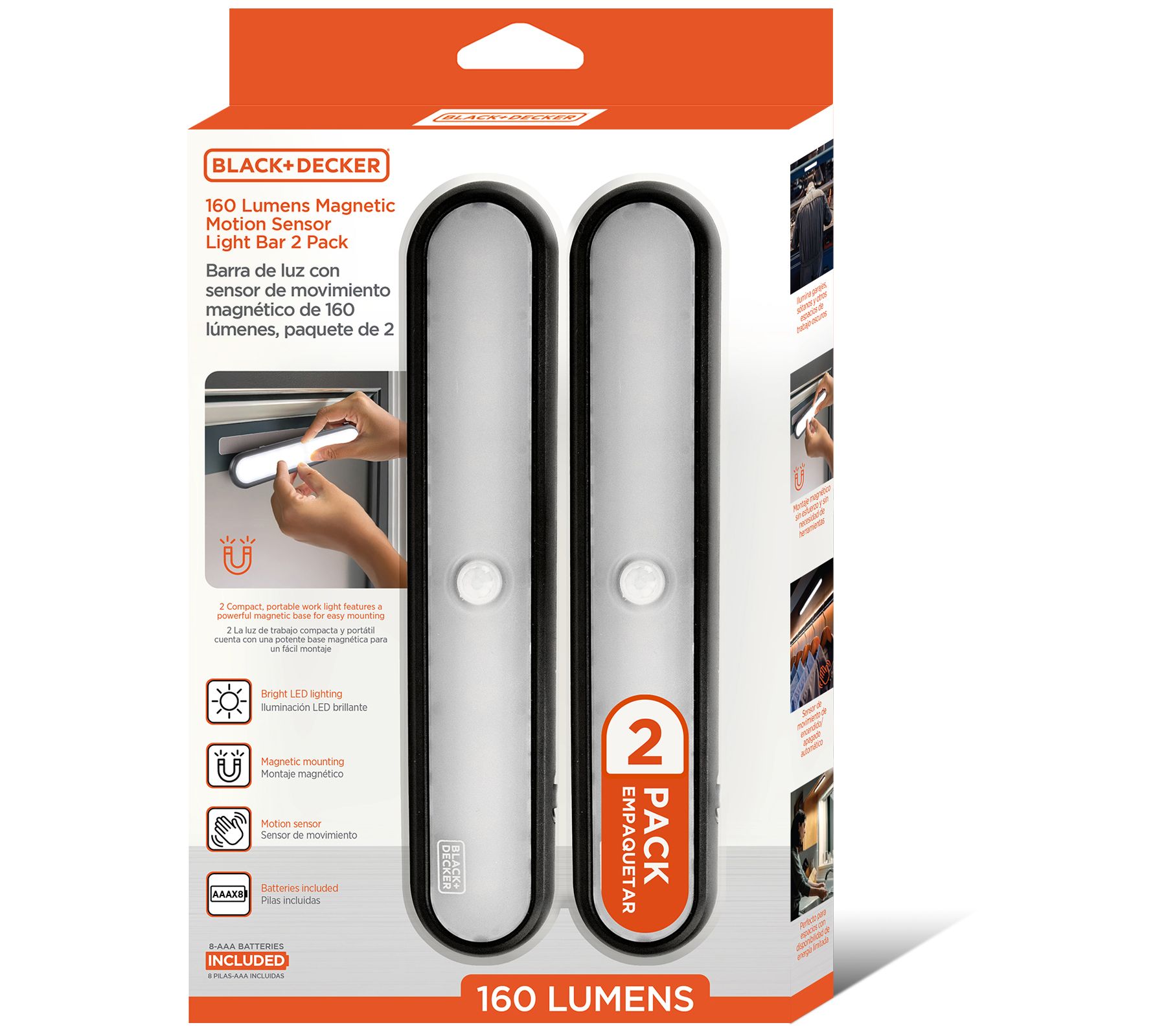 Includes two magnetic motion sensor light bars and eight AA batteries (four for each light)