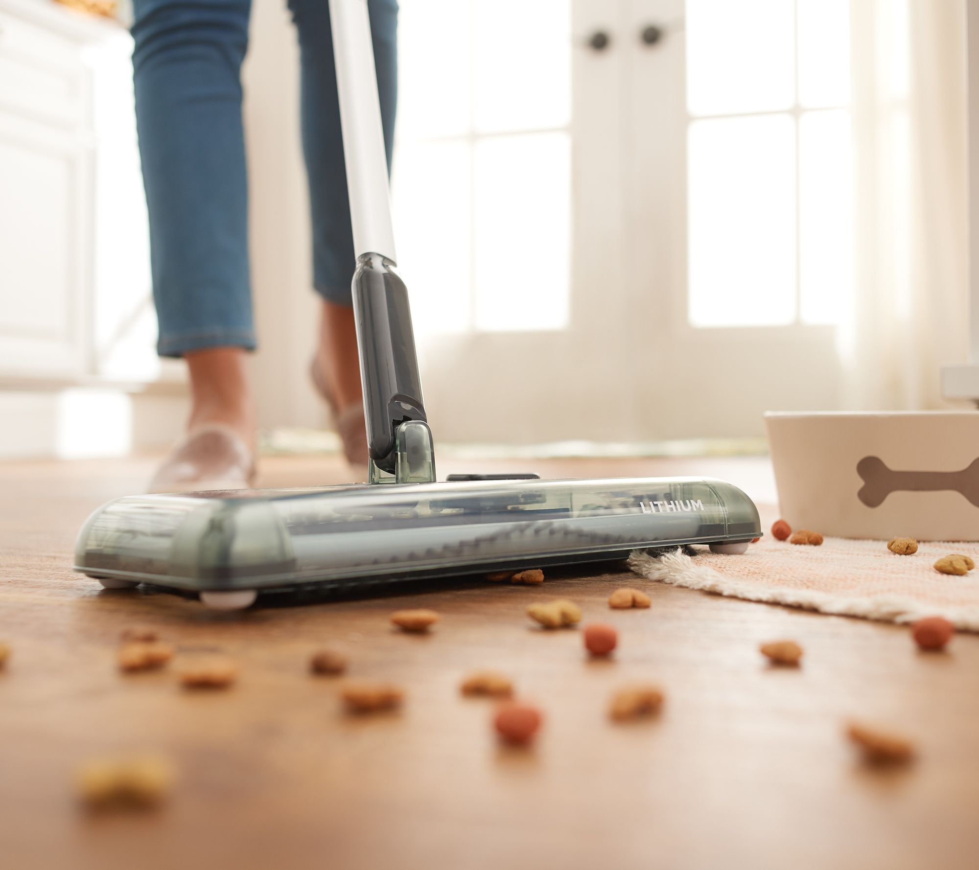 Keep this cordless multi-surface floor sweeper on hand for quick, light dry spills and general cleanups between passes of your regular vacuum. Its three rotating brushes on three sides work to gather dirt and debris from several surfaces. The handle lays flat for an easy fit under your furniture. From Black & Decker.