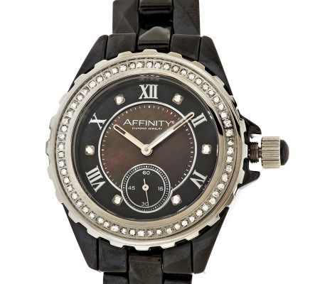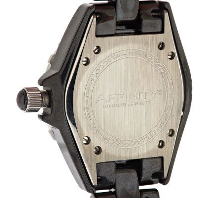 The strength of stainless steel combines with the timeless elegance of diamonds to create this gorgeous watch. A black, faceted ceramic bracelet gives it a modern edge, while still maintaining its classic appeal. From Affinity(R) Diamond Jewelry.