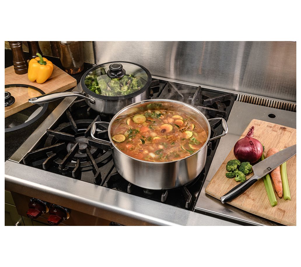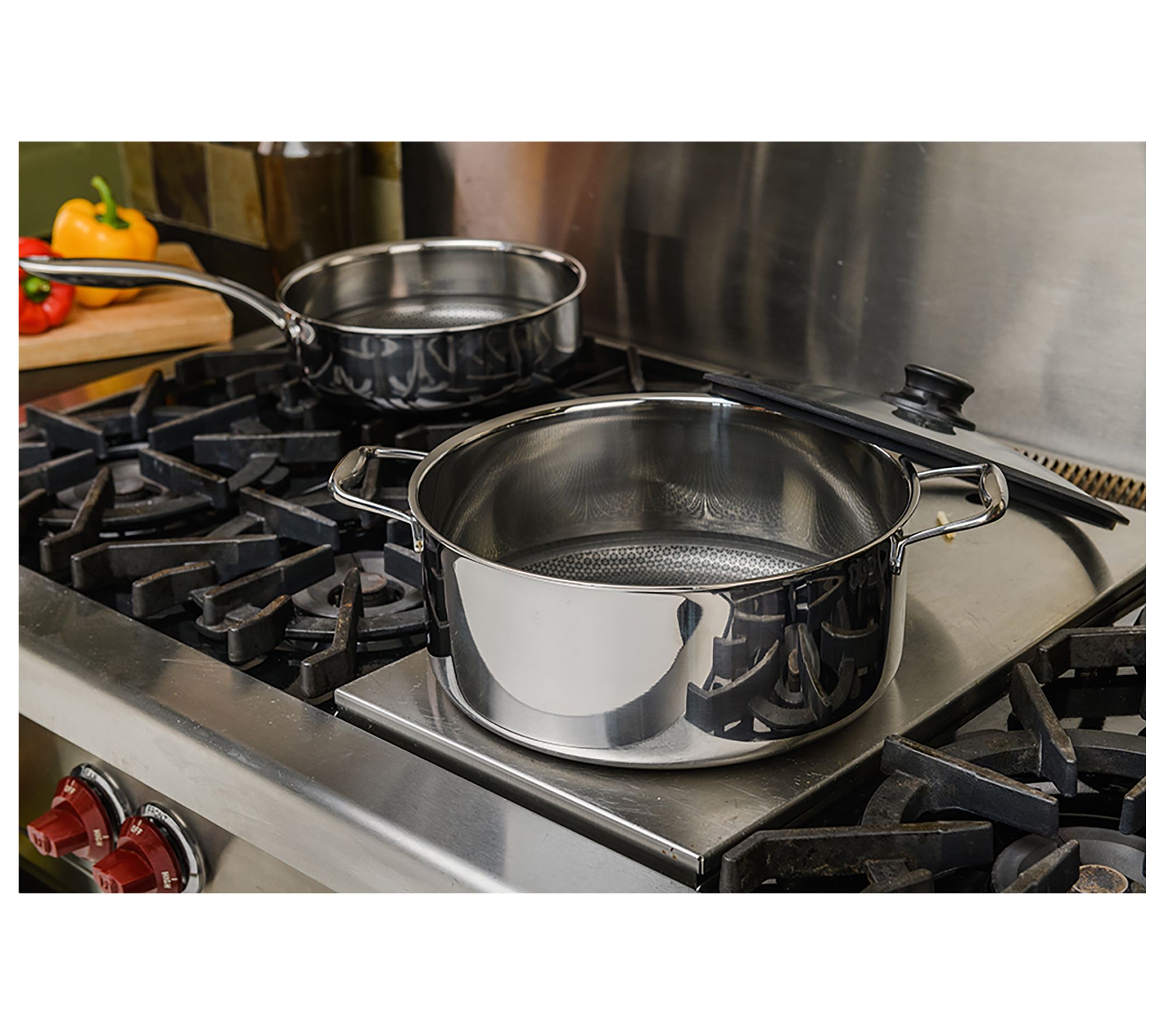 Your kitchen needs this. Perfectly sear fish, brown meat, saute veggies, and slow-cook stews with this Hybrid stainless steel stockpot. Ideal for all cooktops, it ensures fast, even heating and cleans up like nonstick, thanks to its textured surface. From Black Cube.
