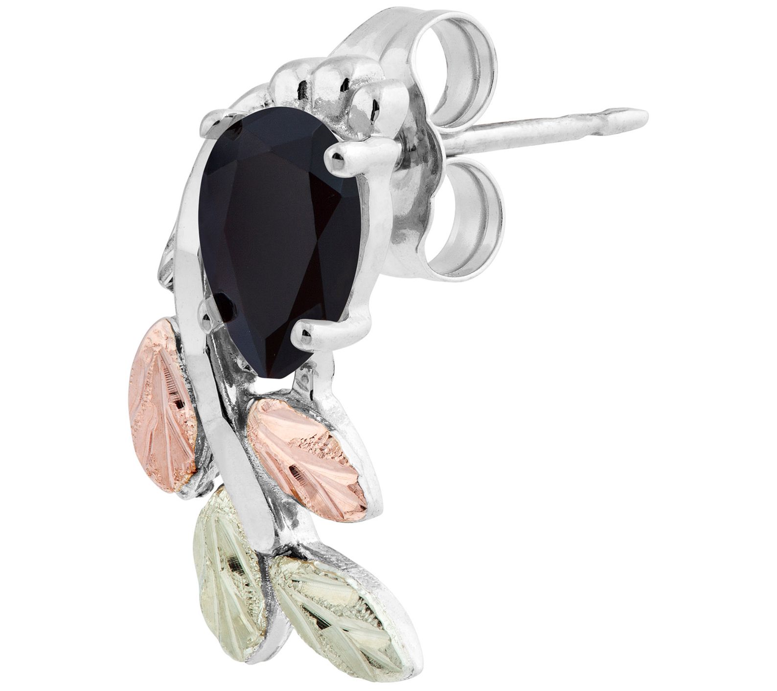 The onyx gemstone on these sterling silver earrings is graced by a 12K rose and green gold vine for the perfect combination of dark and light. From Black Hills Gold.