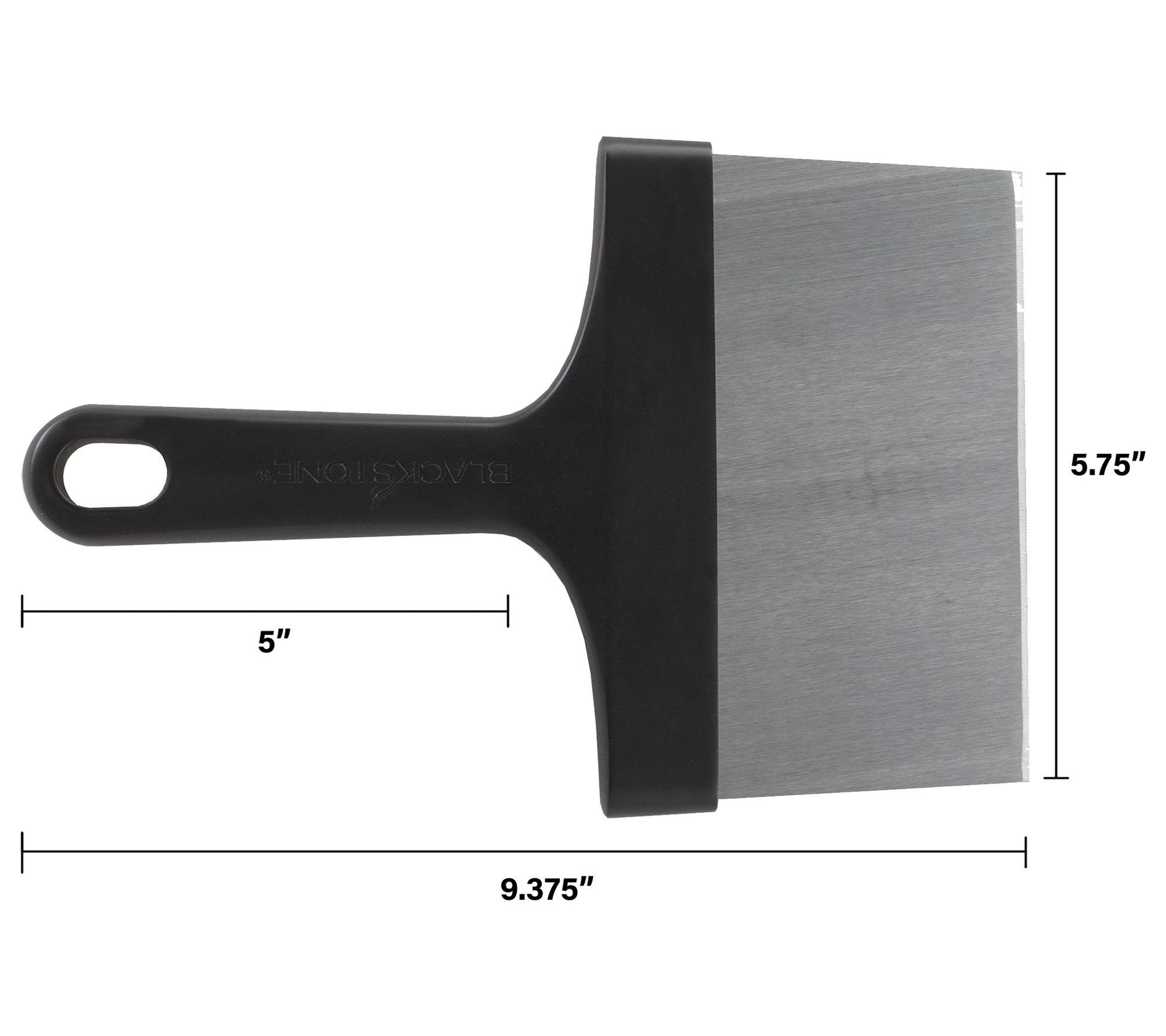 Tackle tough messes on your griddle like a pro with the Blackstone scraper. Its rust-resistant stainless steel design ensures durability, while the heat-resistant plastic handle keeps your hands safe. After a successful cooking session, just pop it in the dishwasher for easy cleanup. From Blackstone.