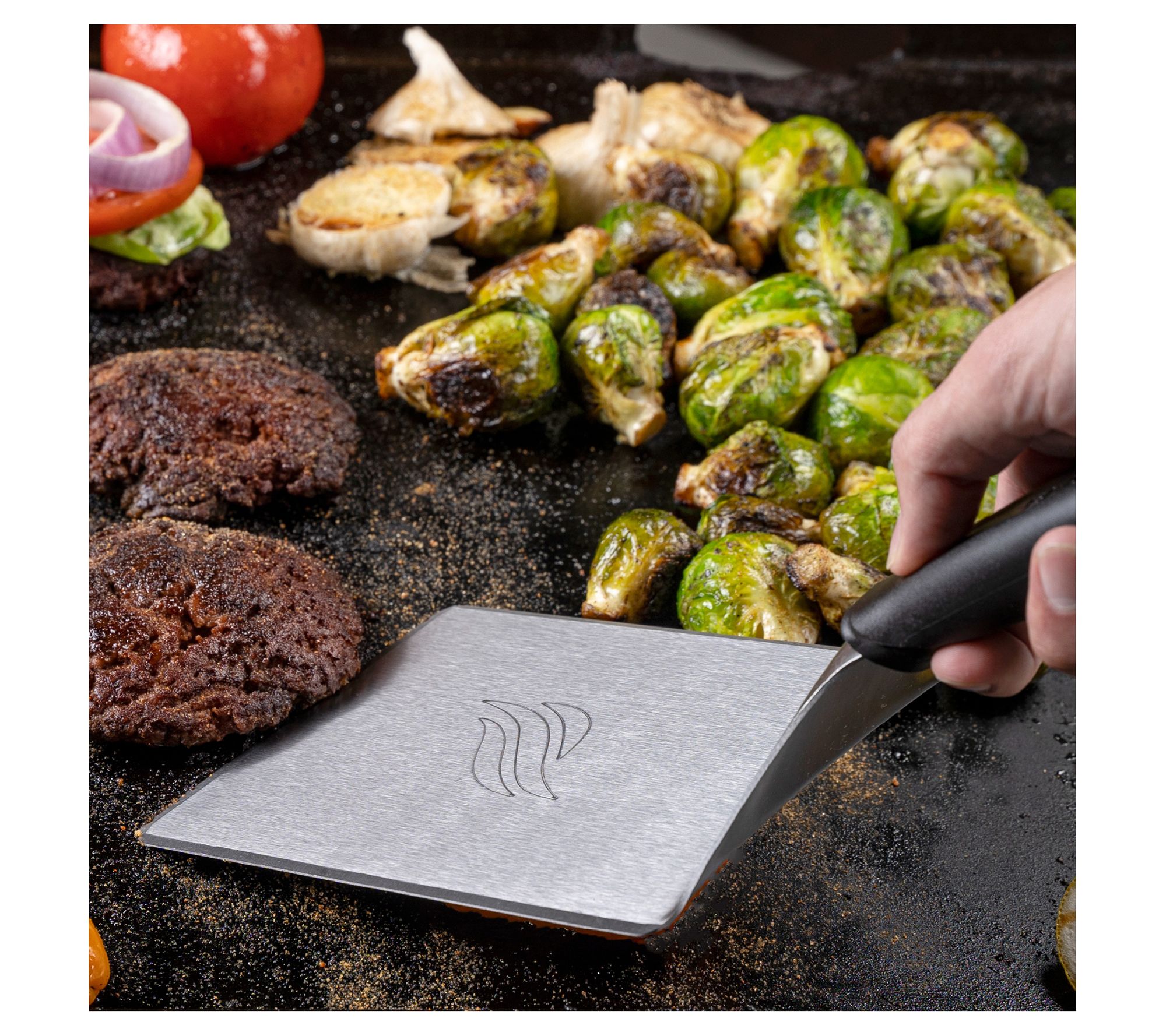 Grill to perfection with the Blackstone hamburger spatula. Designed for flipping, chopping, and scraping, this heavy-duty tool handles monster burgers and steaks with ease. Its heat-resistant handle and beveled edges help you achieve flawless results every time. And when you're done cooking, simply pop it in the dishwasher for effortless cleanup. From Blackstone.