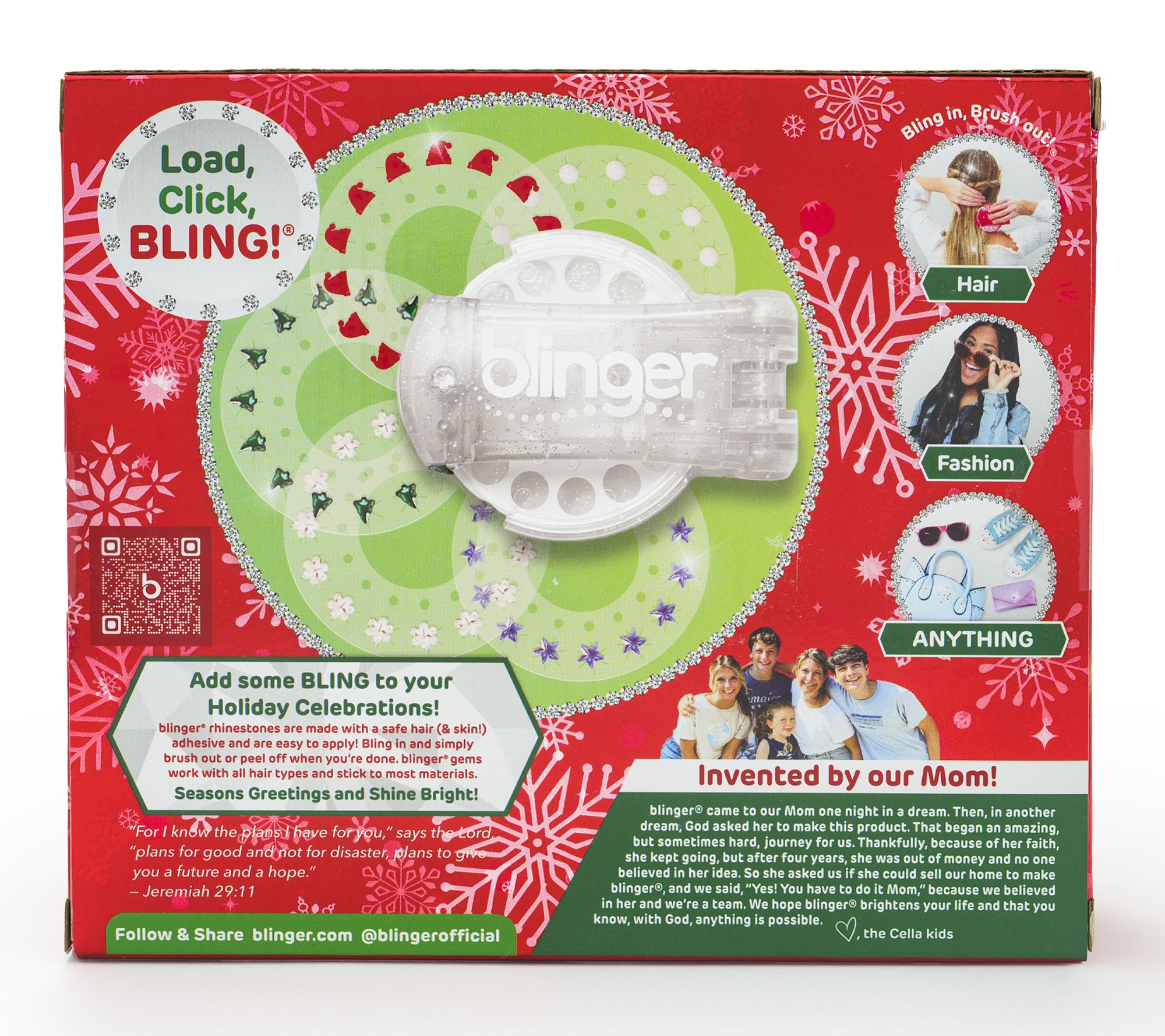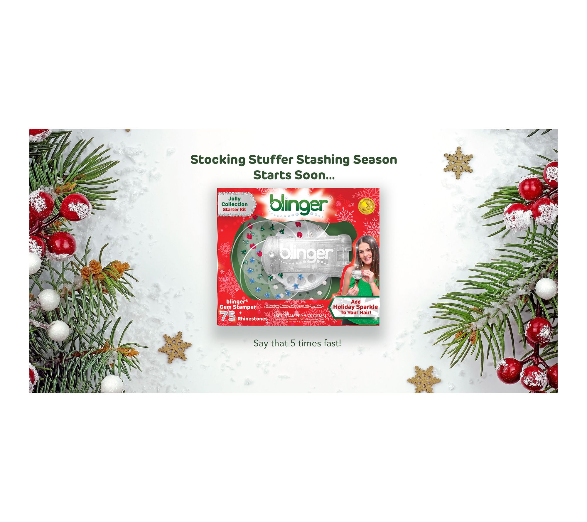 Sparkle lighting up your socials this holiday? You'll low-key love adding it to your festive look with the Blinger Gem Stamper Jolly starter set, designed to capture the magic of sparkling decorations on a snowy night. The styling tool makes it simple to pop the pretty rhinestones into hair or accessories -- just load, click, and decorate. The adhesive gems are designed to stay in place until you brush them out, letting you rizz up your style for parties, dances, or everyday fun. From Blinger.