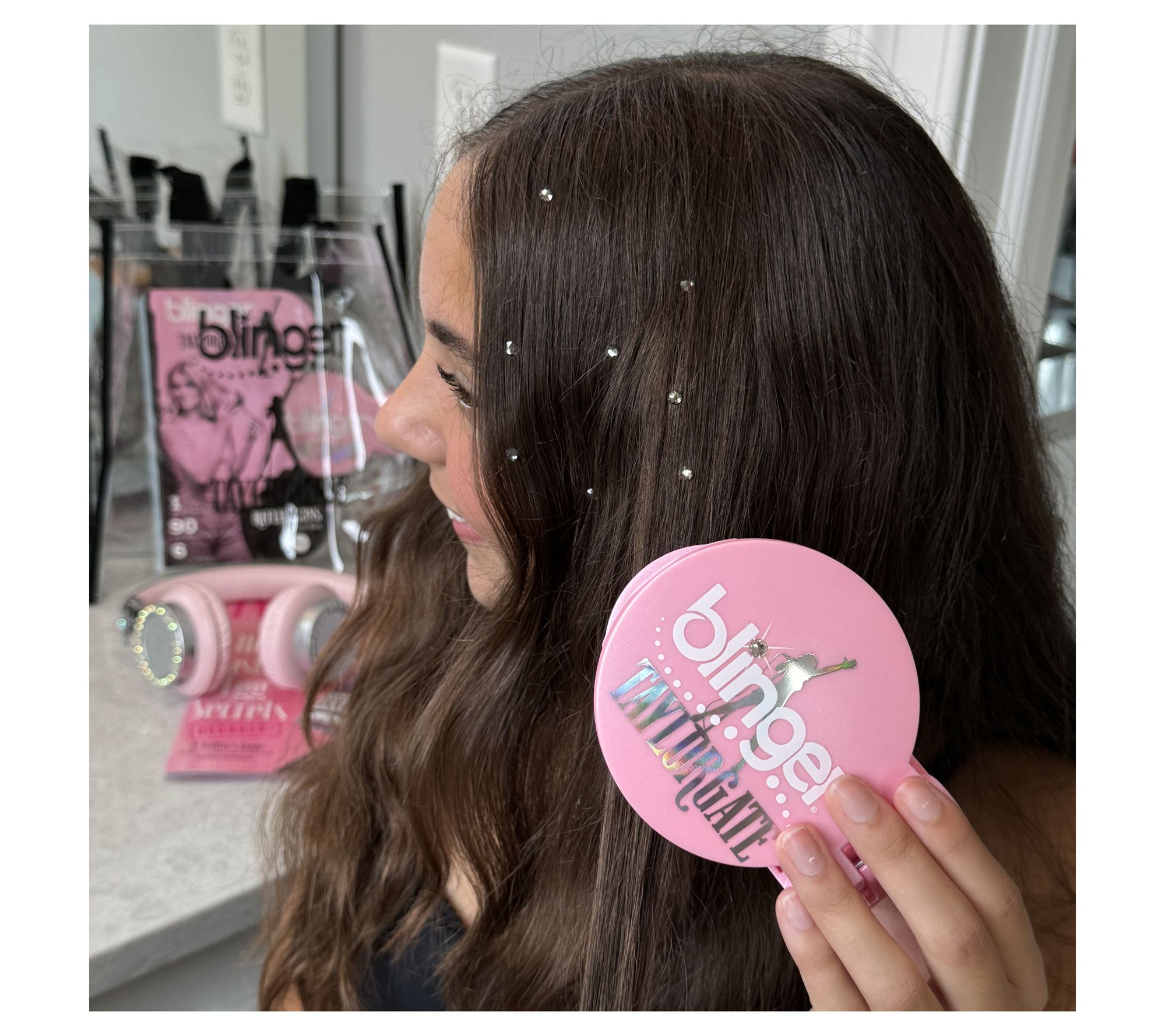 Blinger Reflections is the world's only styling tool that effortlessly adds genuine crystals to your hair without heat, electricity, or harmful glues. Be dazzling in an instant! The premium precision-cut crystals add that extra sparkle for any hair day. The crystals have a proprietary adhesive on the underside of the gems, so they are safe for hair (and skin)! When you're ready to remove the gems, simply brush them out.