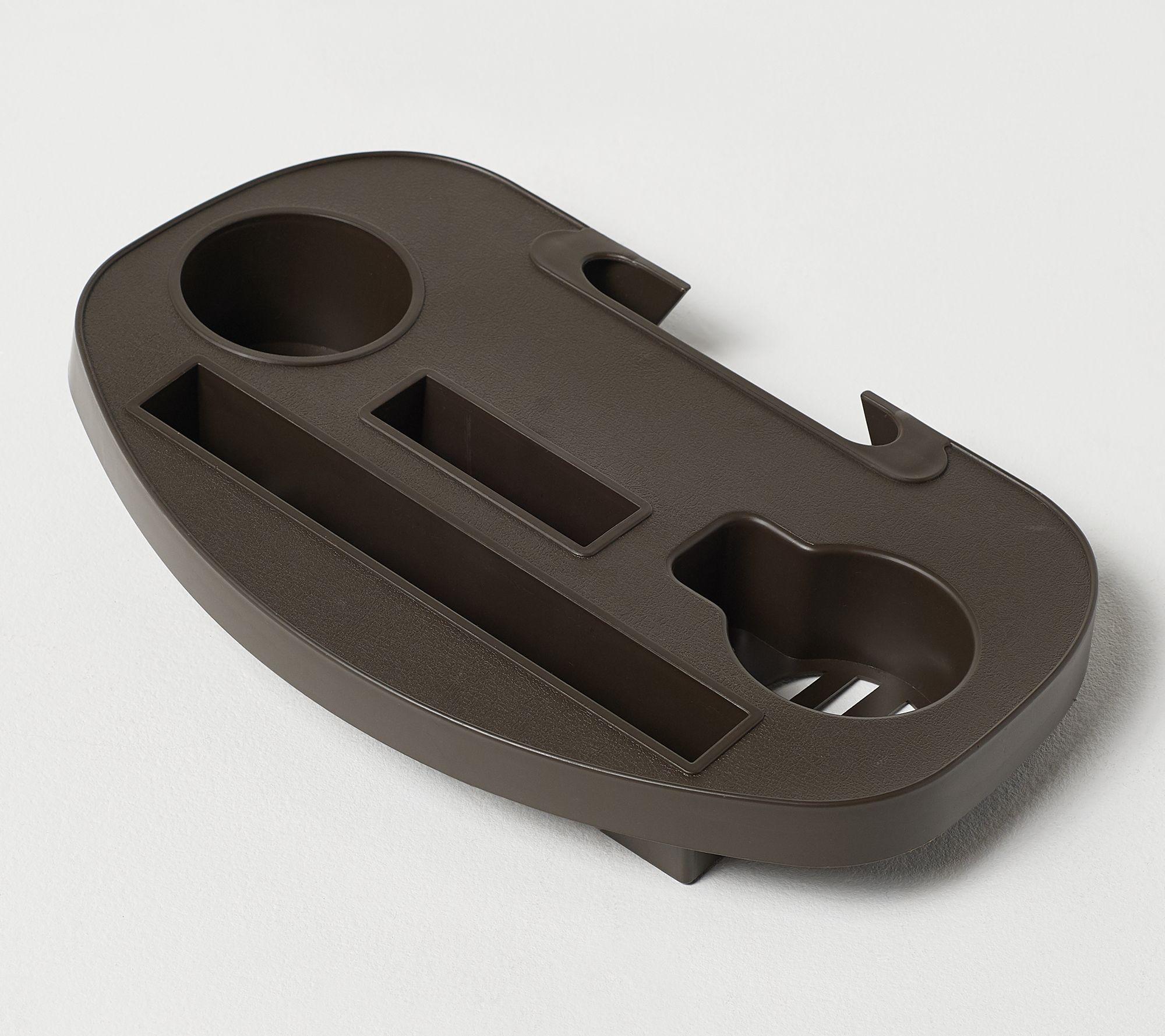 • Tray features media slot and two cupholders