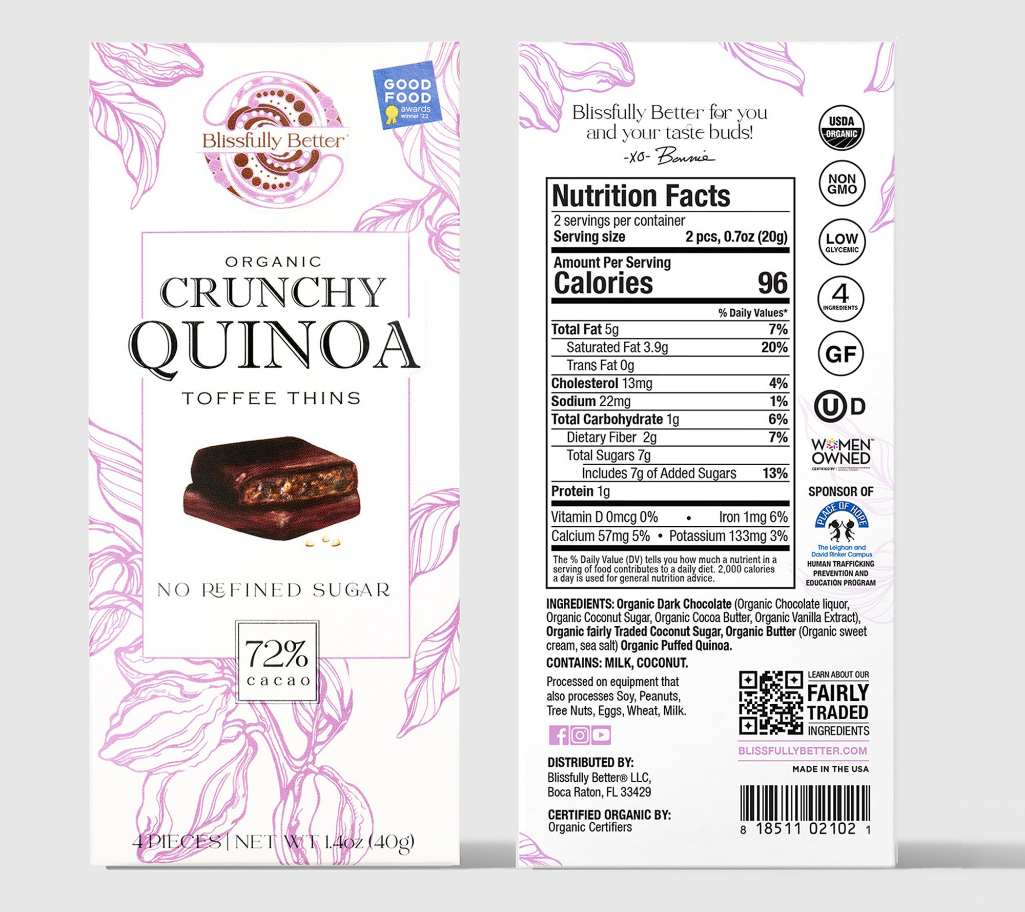• Includes six 1.6-oz Crunchy Quinoa Toffee Thins