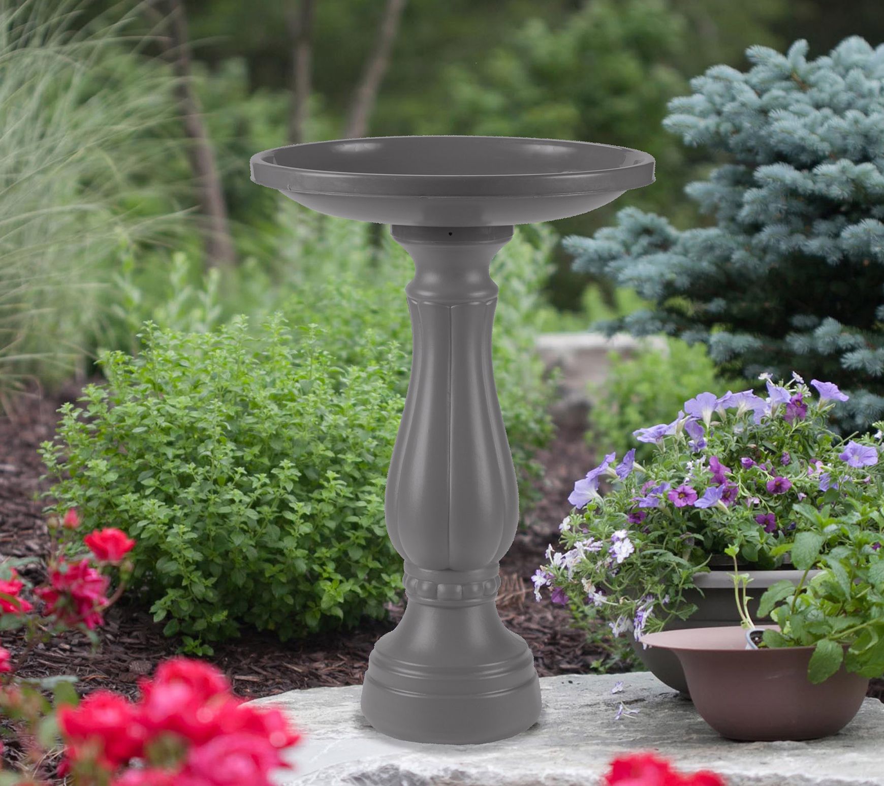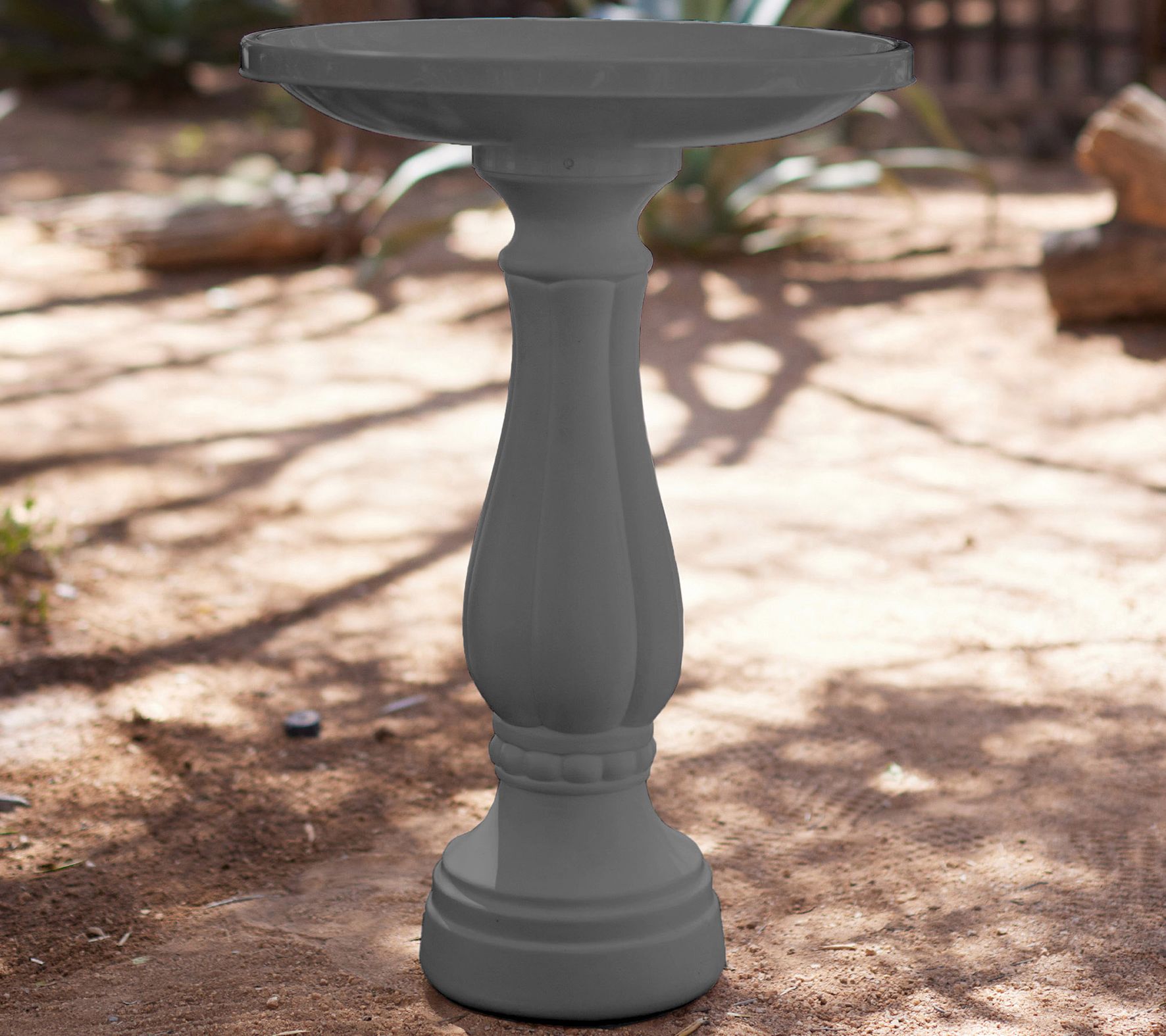 Welcome feathered friends into your garden with this durable birdbath, featuring an elegantly curved pedestal and plenty of room in the basin for splashing. From Bloem.