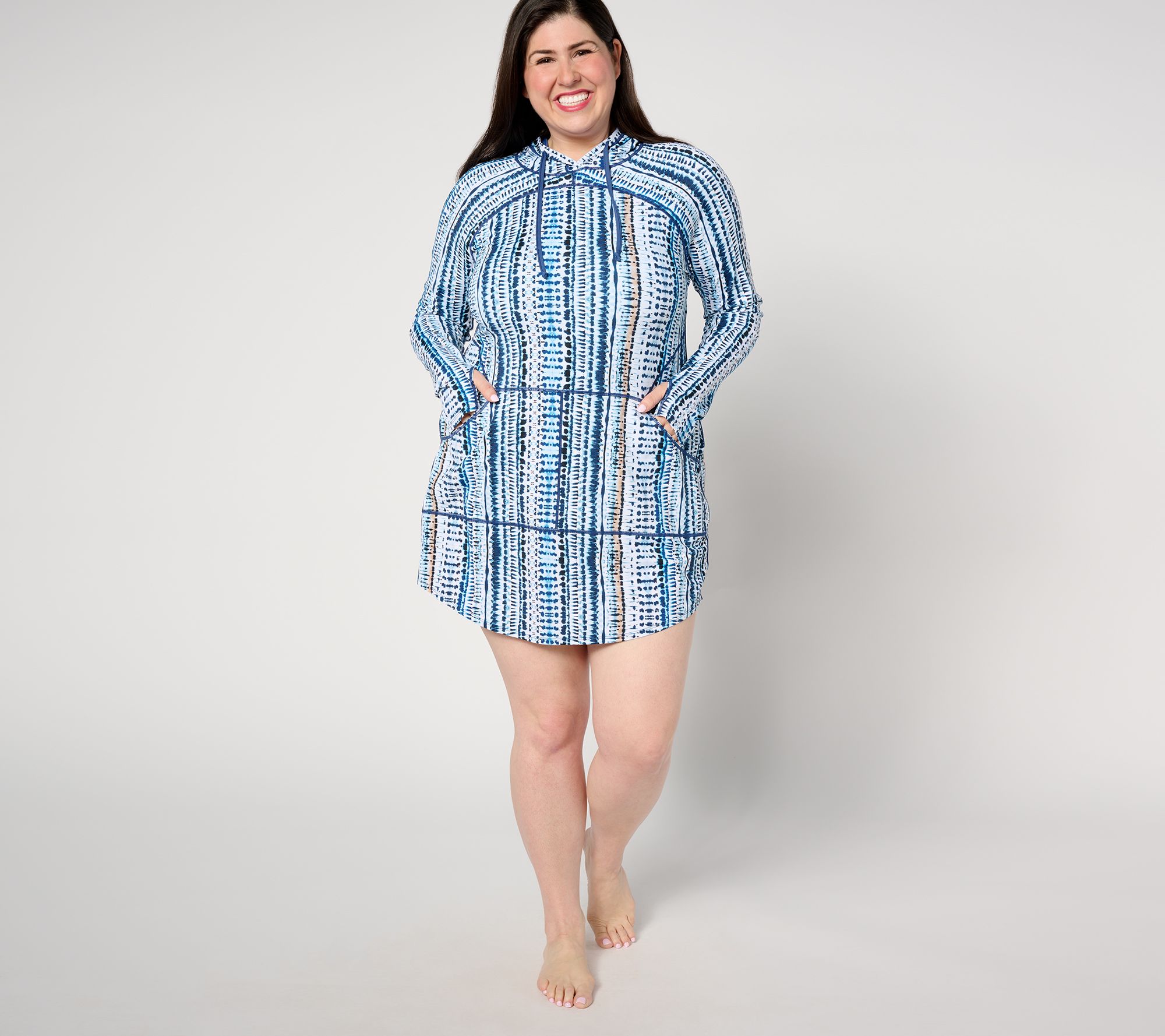 Not an inch of shade to be found? This hoodie dress, constructed in UPF 50 fabric, has you cutely covered down to the thumbholes. From BloqUV x Jantzen.