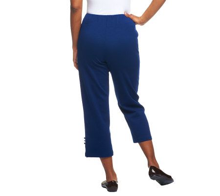 Find comfort in the stretch ponte knit of these crop pants. The classic shape is ideal as a base for stunning outfits. From Bob Mackie.