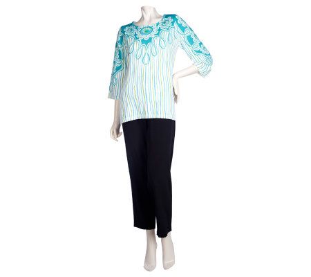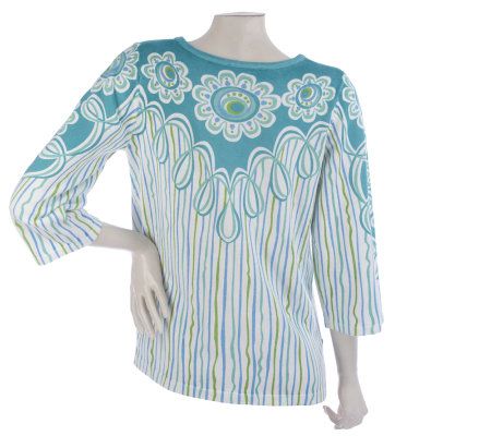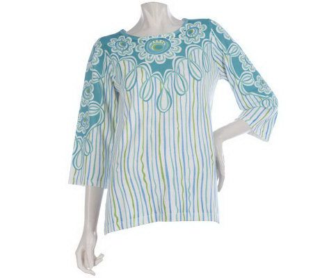 Bob Mackie's 3/4 Sleeve Carnival Print Sweater with Side Slits