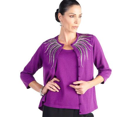 When you're looking for special-occasion dressing, look no further than Bob Mackie fashions. Inspired by one of the designer's couture gowns, this showstopping cardigan gives you a high-end designer look for less.