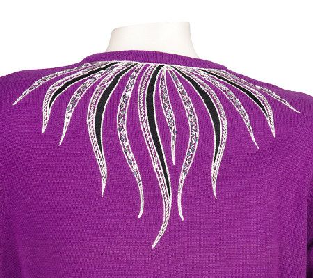 Add a tank and a pair of straight-leg pants for an impactful evening look. Or pair it with jeans and boots for casual sophistication. No matter how you wear it, this high-drama cardigan will leave you feeling ready for the runway every day. From Bob Mackie.