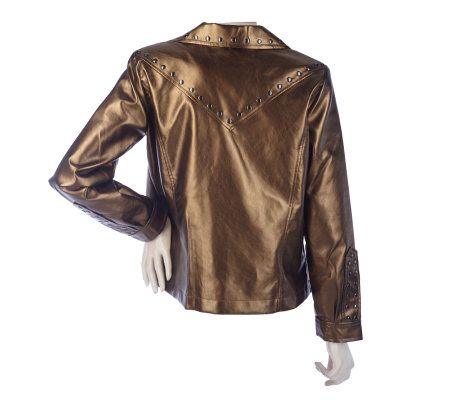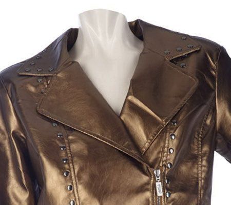 Even if your mode of transportation is more four-door than two-wheels, this faux leather motorcycle jacket is still a perfect choice. Stud detailing and a notched collar give it an edgy look. From Bob Mackie.