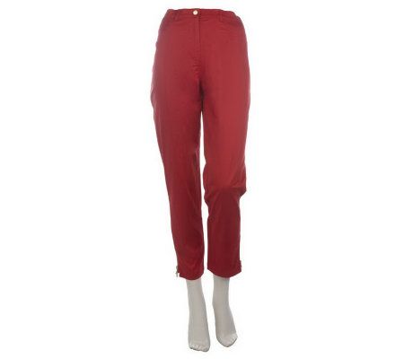 Short on length, long on style. These crisp twill ankle pants combine cool comfort and a classic silhouette--down to two faux front pockets for a perfect casual-chic look. From Bob Mackie.